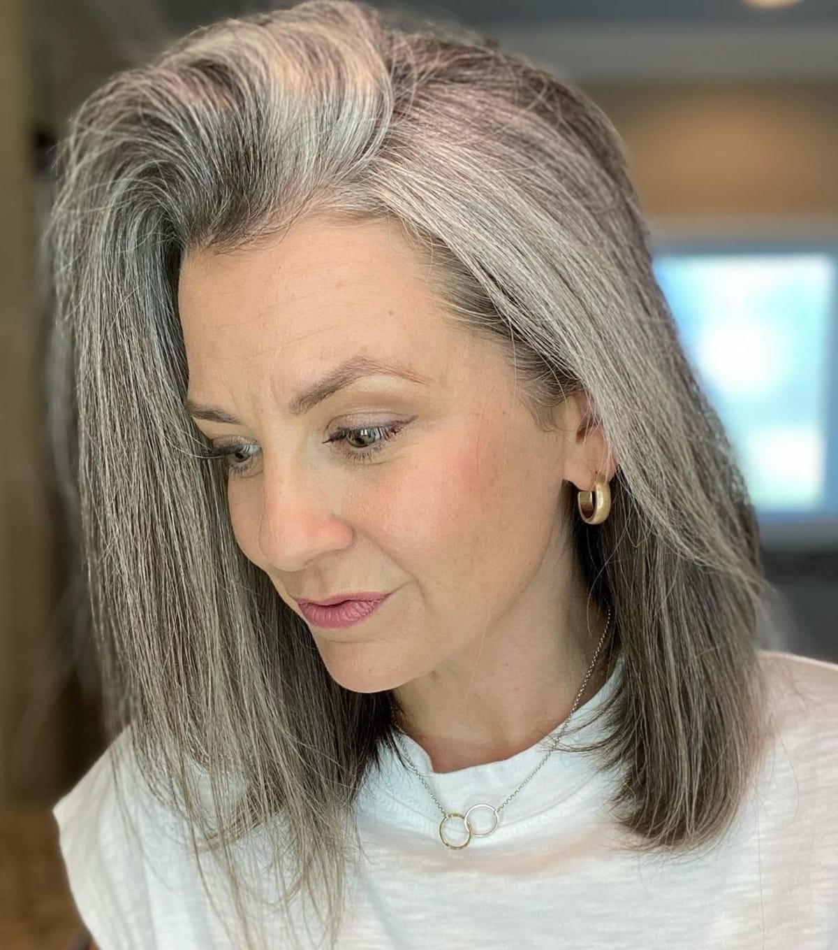 Light salt and pepper hair work beautifully for women with lighter eye colors and fair skin tones. It enhances the overall appearance. Utilizing purple shampoo is particularly beneficial on lighter hair shades.