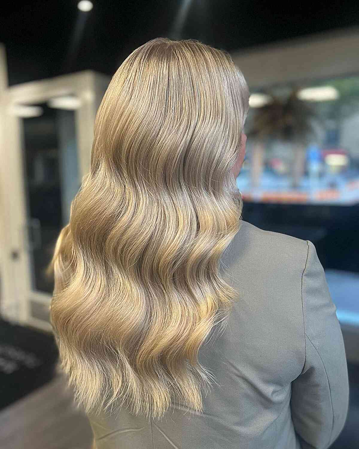Stunning champagne blonde long locks are among the most sought-after blonde shades. Hairstyles featuring champagne blonde hair color exhibit a creamy beige balance of warm and cool tones with a brilliant shine. Look for inspirational images that closely match your natural root color and texture to ensure realistic expectations for your hair, and think about incorporating extensions for additional length.