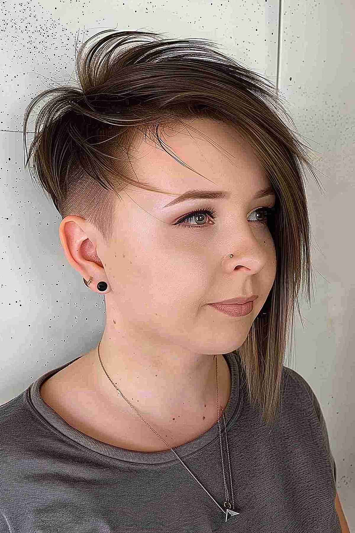 Turn heads with this stylish undercut bob—a bold statement for those with fuller faces. The precision-cut sides give way to a playful fringe, offering a refined look with an edge. While the top’s length adds versatility for styling, the undercut ensures a cooler feel. Ideal for straight, fine hair, it creates the illusion of volume where you desire it. Just note, an undercut requires commitment to maintenance, but it’s a favorite choice for a no-fuss morning routine!