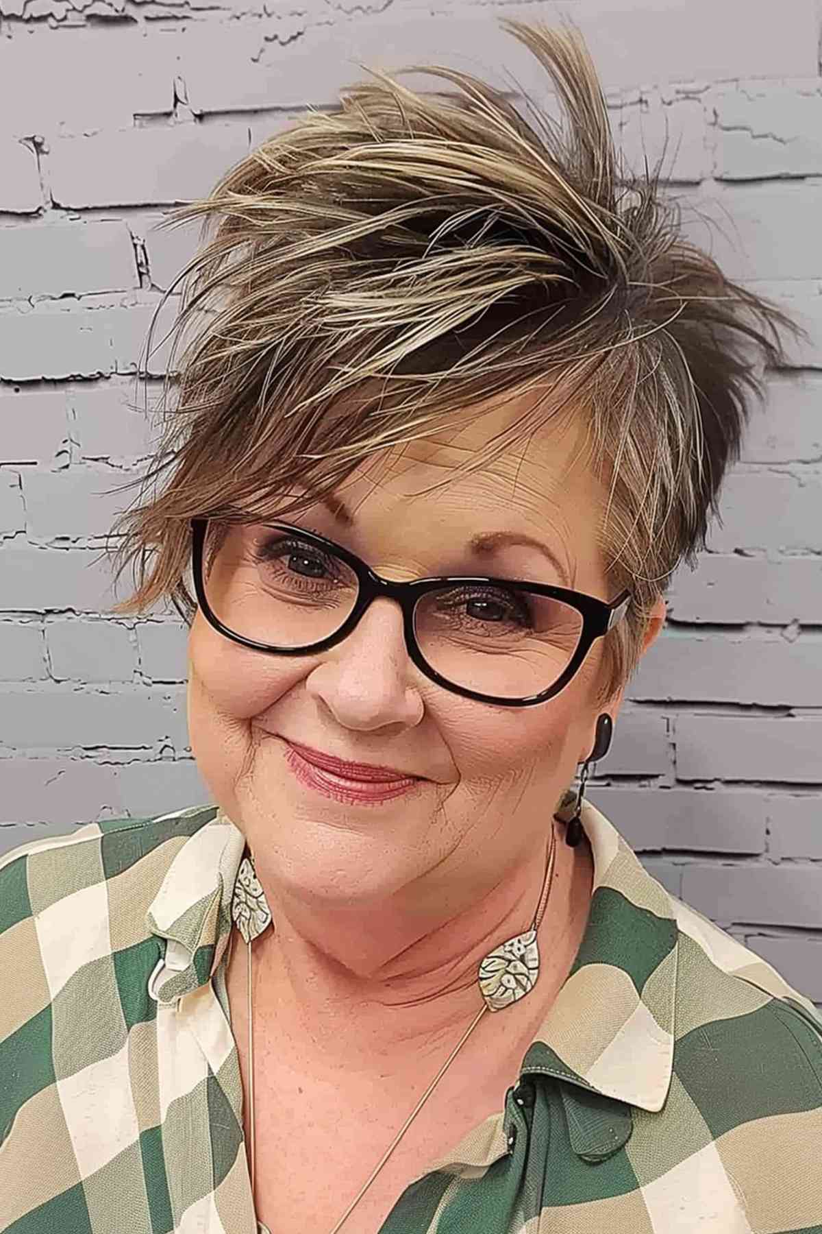 Consider a stylish long choppy pixie cut for a fuller face to enhance your cheekbones and refine a round jawline. The crown’s long fringe and choppy pieces effectively elongate a round face. This distinctive style for round faces is particularly flattering on women over 50.