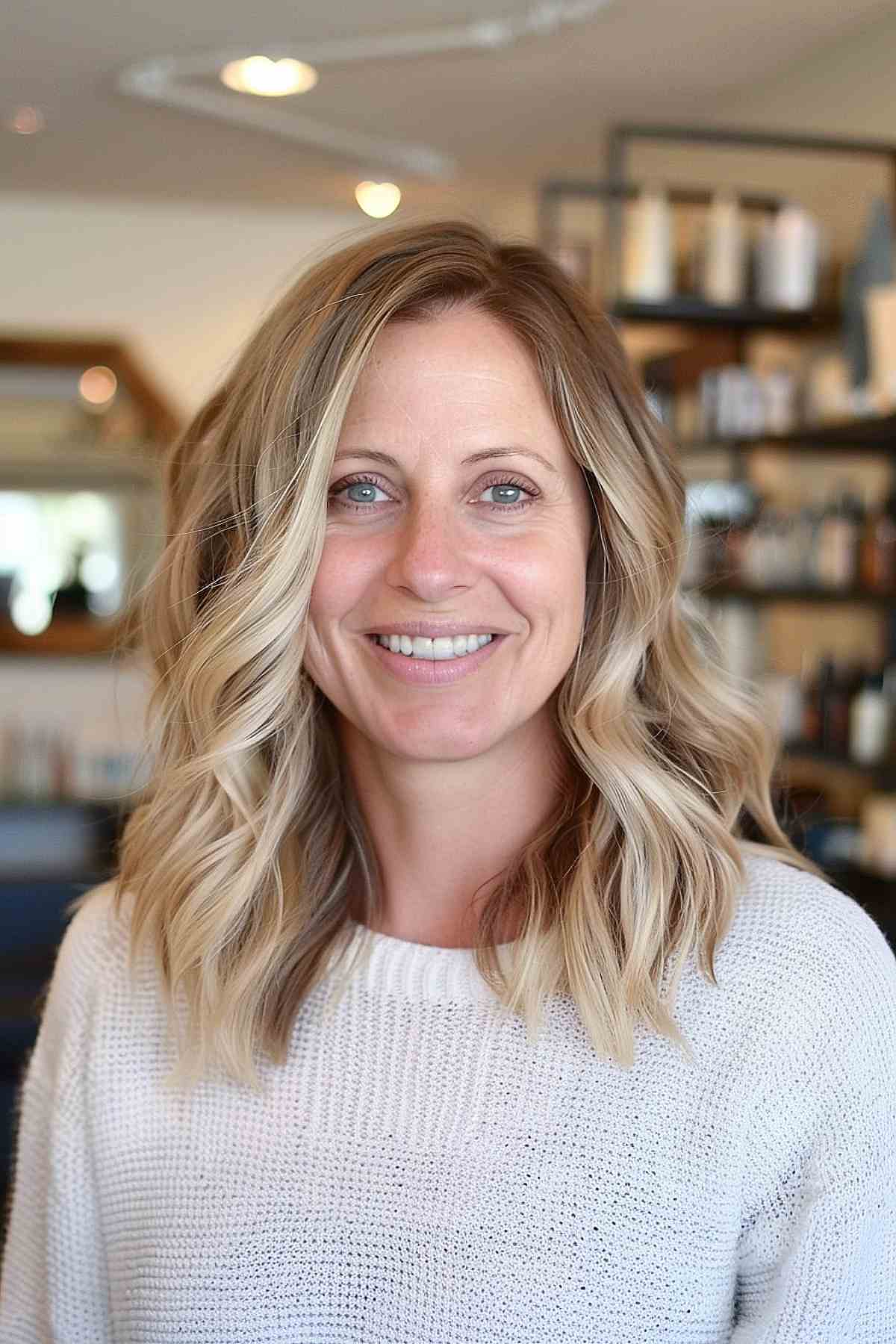 Stylish Mid-Length Beach Waves for Women Over 40