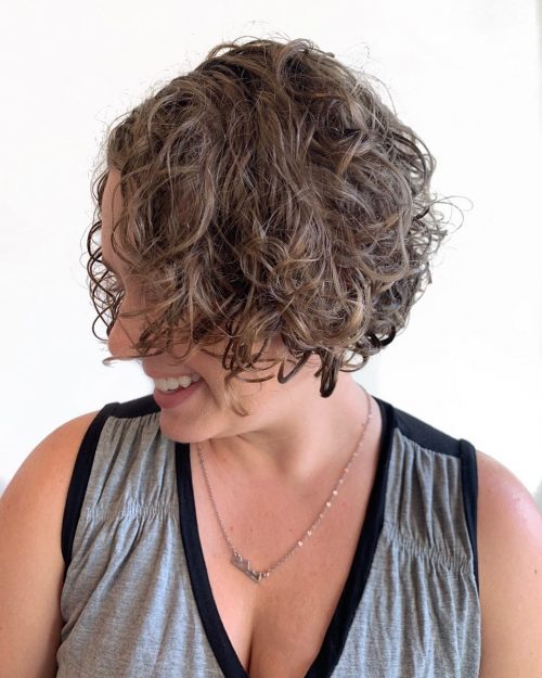 These stylish, tight natural curls look breathtaking on this A-line bob haircut. Try a chic and textured bob style for some fresh hair results.