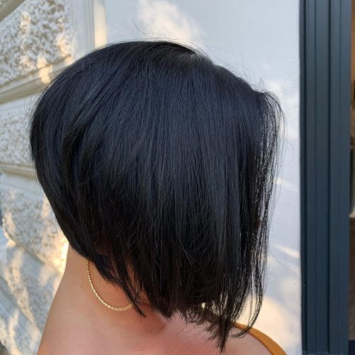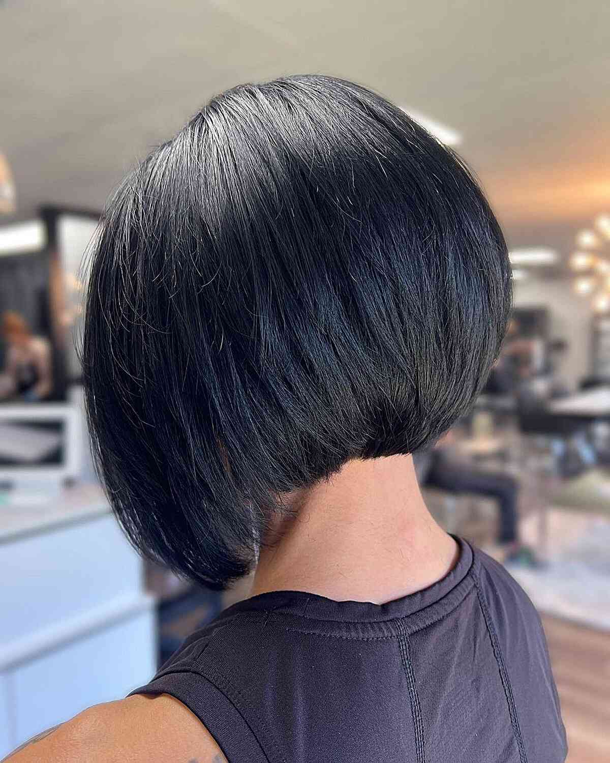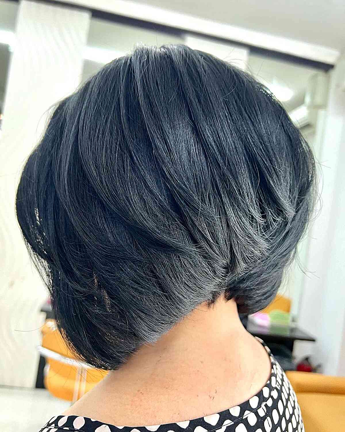 Why settle for an ordinary, standard bob? You can opt for a layered, jet-black a-line instead! The layered, a-line bob is both striking and stylish. It adds a sophisticated touch to your everyday hairstyle.