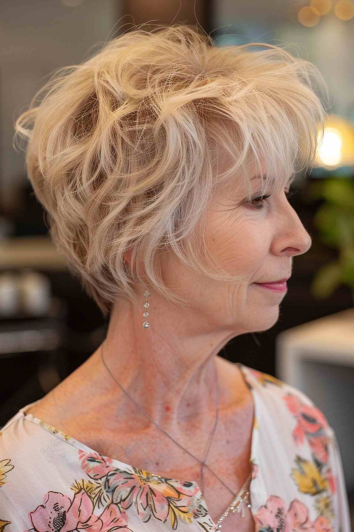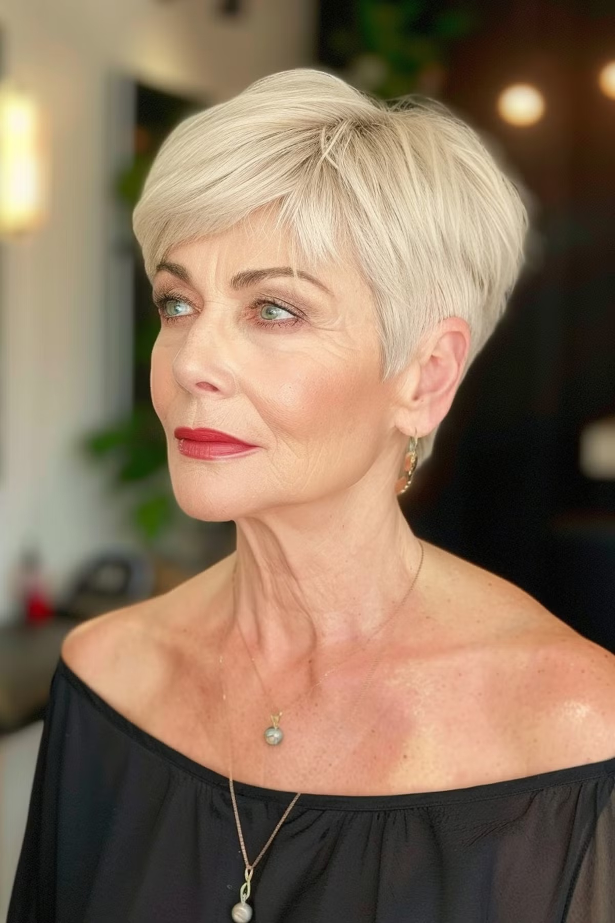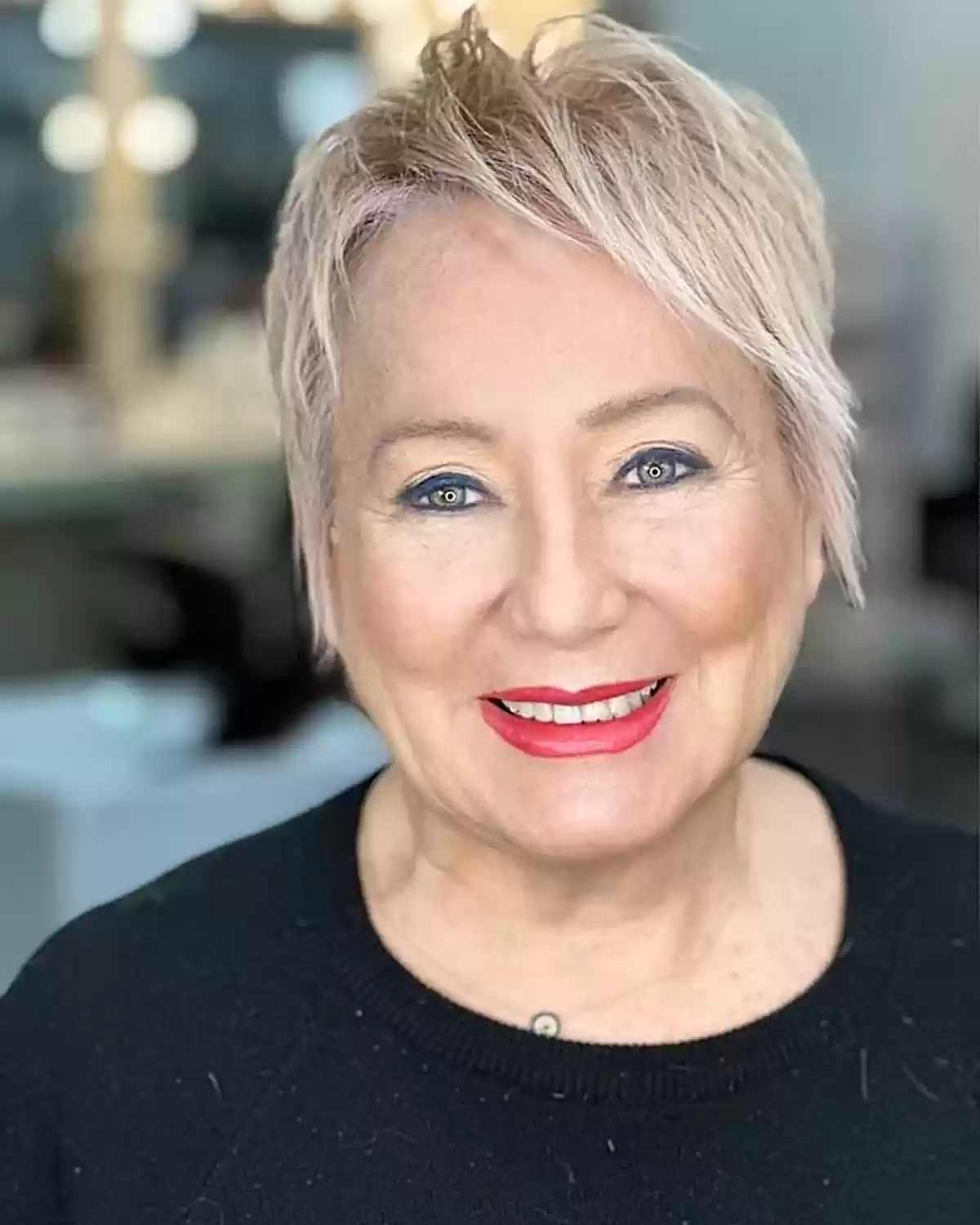 Stylish Textured Crop Hairstyles for Women Over 60 with Platinum Blonde Hair