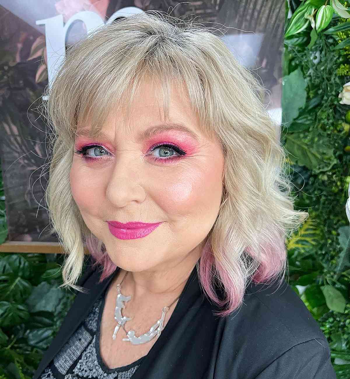 A curled bob featuring pink ombré tips is a delightful way to infuse a touch of brightness and color while remaining age-appropriate. The pink ombré enhances your complexion, as grey hair can occasionally wash out certain skin tones. A curled bob is simple to style and low-maintenance but still imparts a youthful and vibrant appearance.