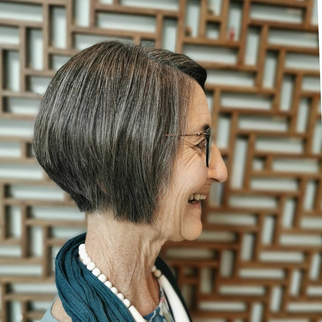 A contemporary wedge cut is a short-length bob with layers that adds more volume to the hair. It has a classic, retro-style finish that flatters older women with grey hair. To give hairstyles for seniors with fine hair a more youthful appearance, add a side fringe and a deep side part.