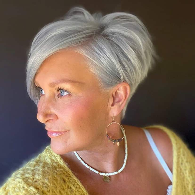 A chic pixie cut is a favored hairstyle for mature women with silver hair. It’s shorter in the back so that a breeze can be felt on the nape area. In pixie cuts like this, strands at the front are longer to give access to a side-swept fringe. In the end, how can you say no to stylish, sassy, and glamorous hairstyles for older women?