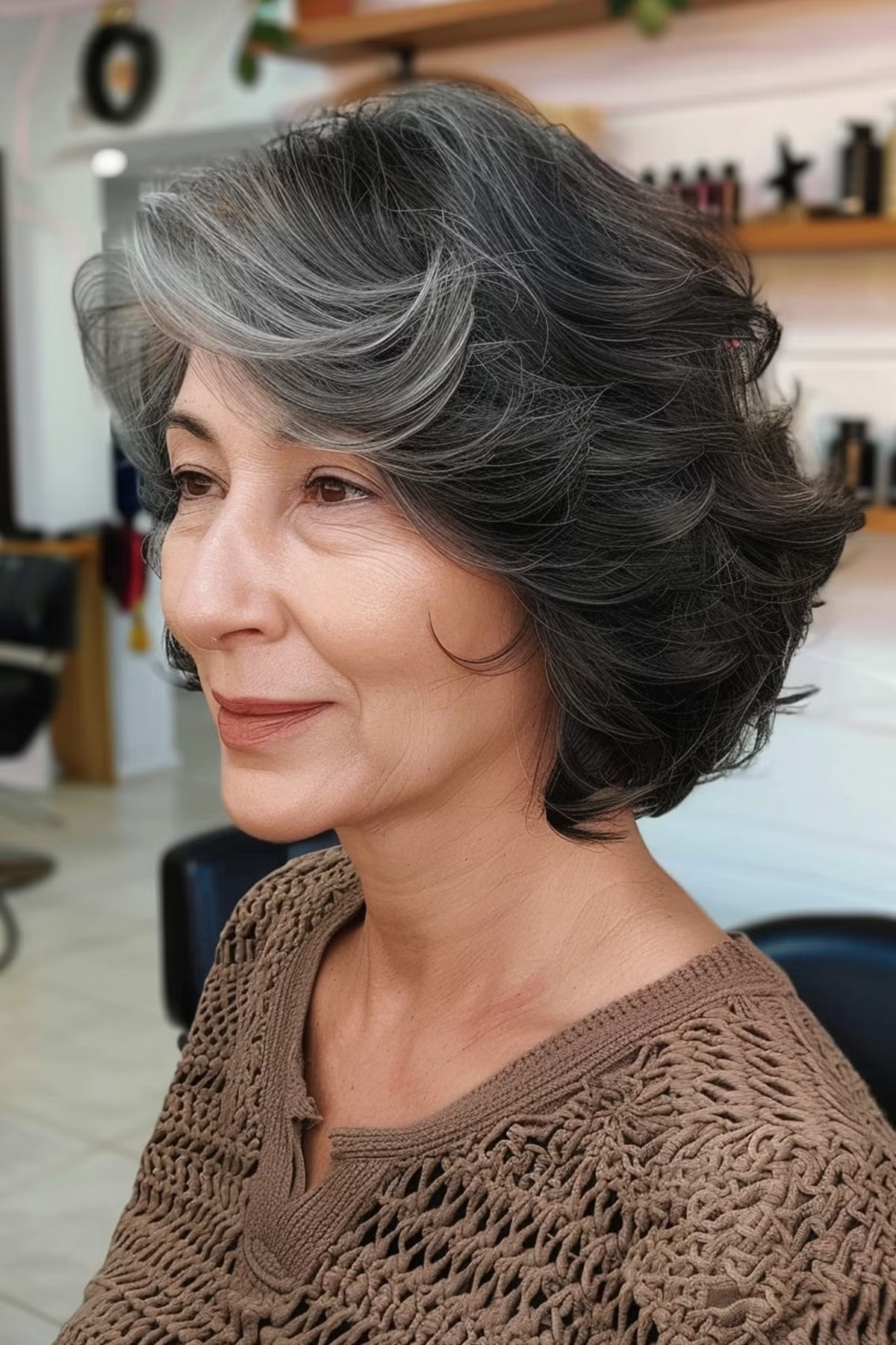 Your mature hair doesn’t have to lack volume! Consider choosing a voluminous yet delicate hairstyle to enhance your tresses. This light, breezy cut will revitalize aging strands.