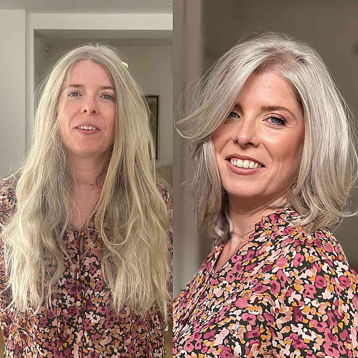 When cut around areas to consider, such as hairlines and whirls, it can be helpful to master the styling techniques. Soft gray undone waves provide your hair with volume and fluidity. So, if the texture doesn’t come naturally, you might explore a texture service to achieve your desired look.