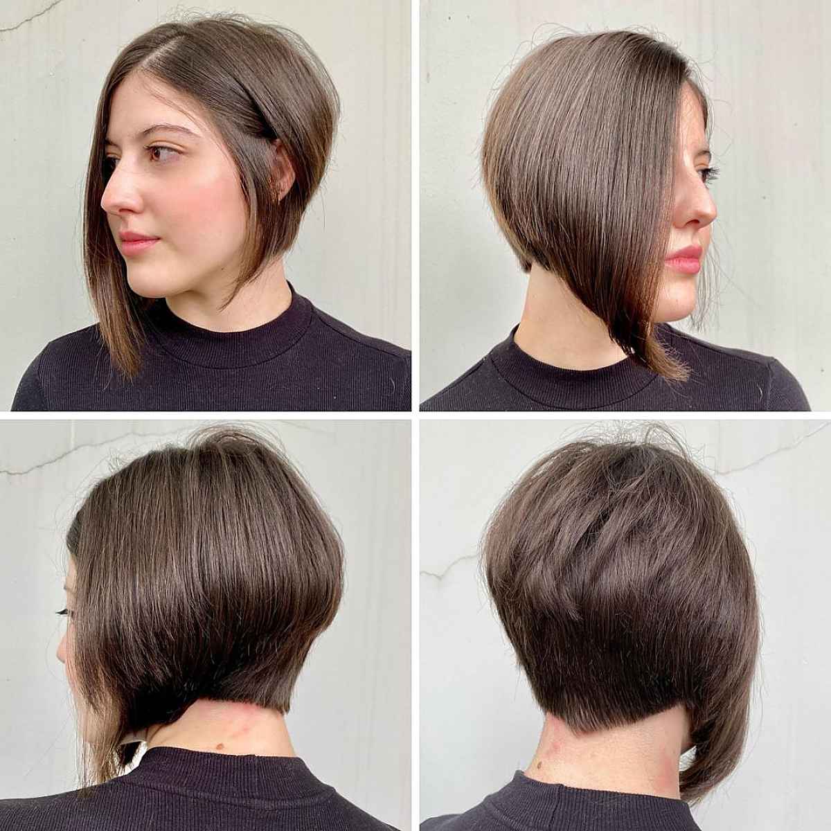 Brown Asymmetrical Bob with Undercut for Fine Hair