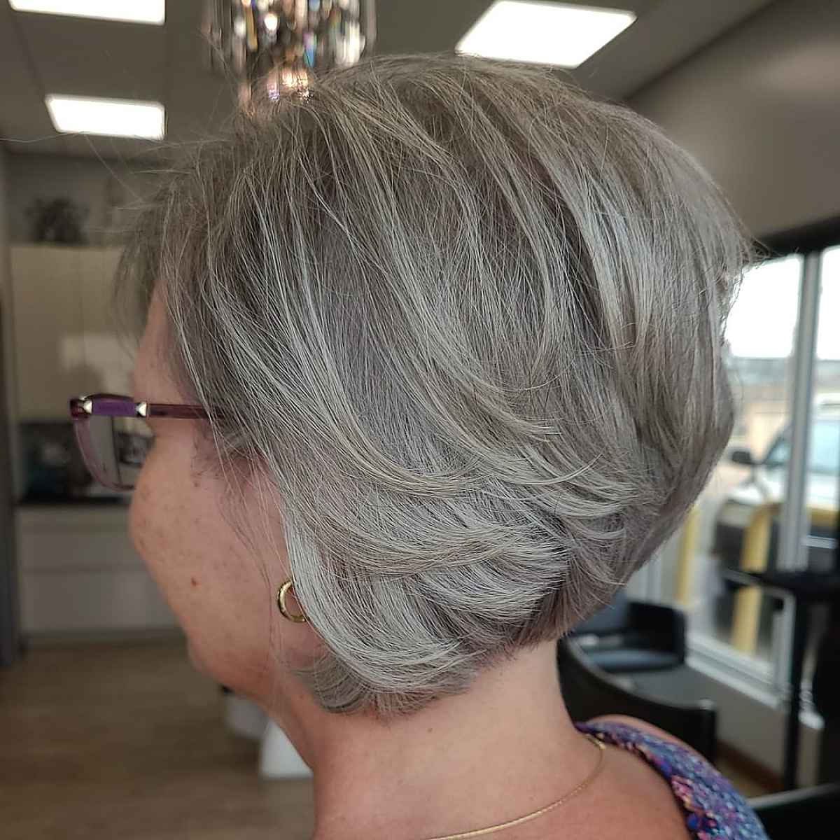 Chic Grey Inverted Bob with Feathered Layers for Mature Women