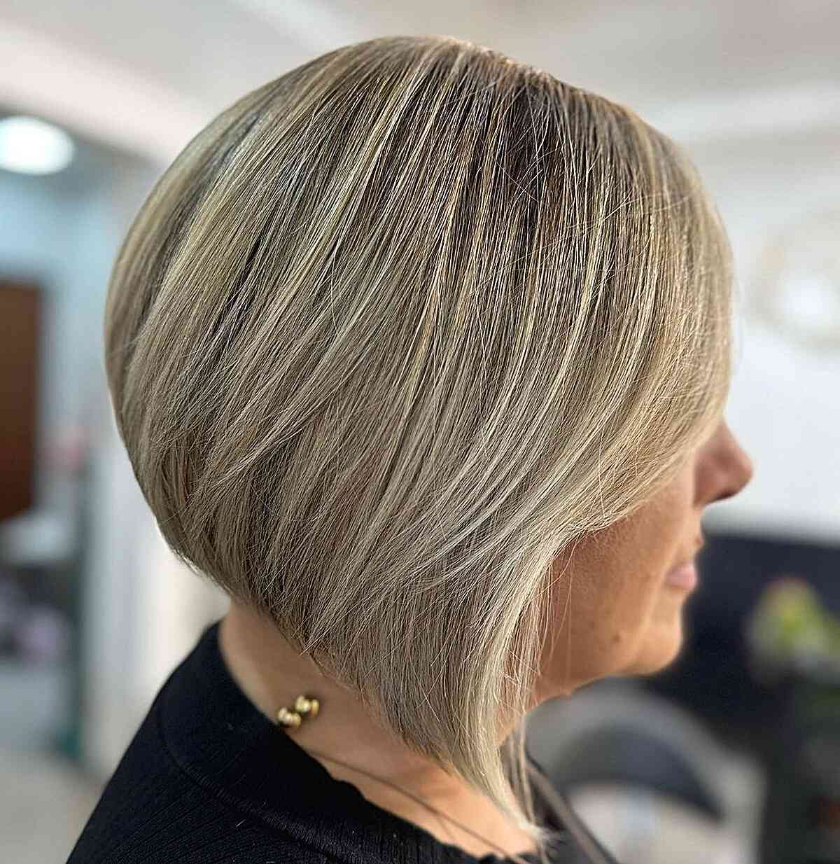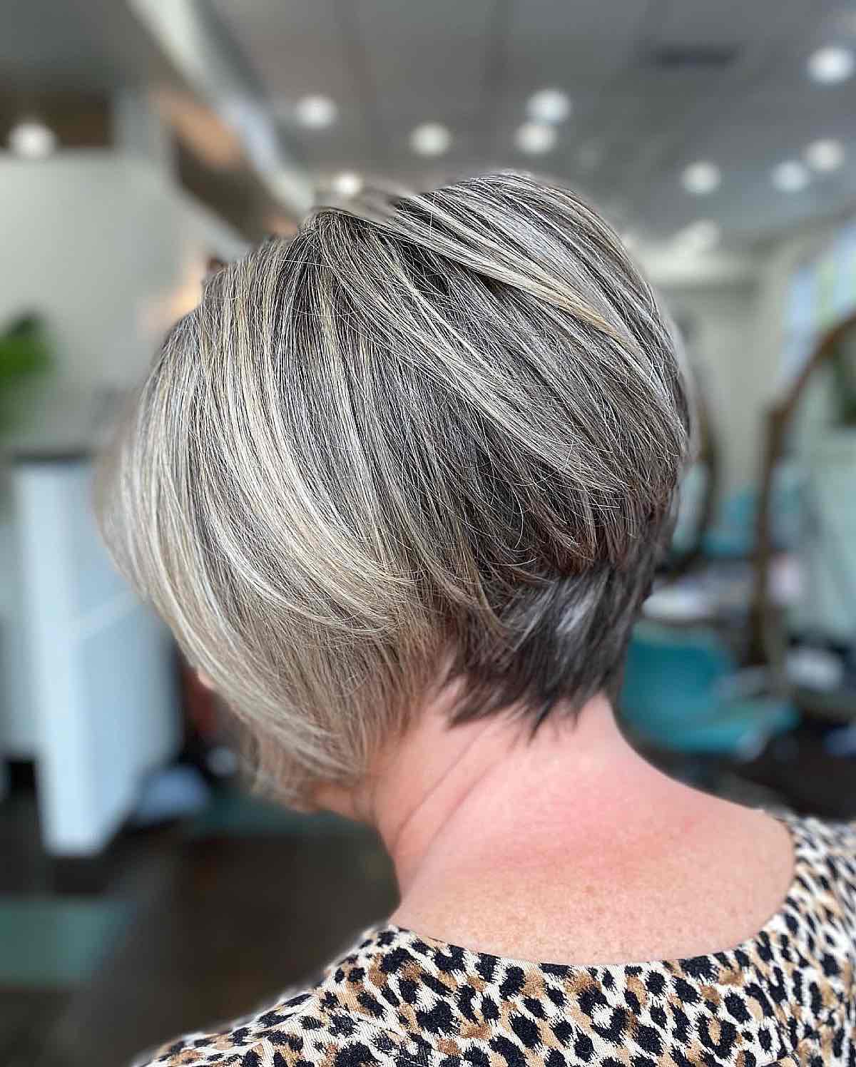 Chic grey inverted bobs with feathered layers for mature women are gaining popularity! You’ll feel youthful and stylish with this sophisticated layered look.