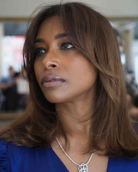 Medium soft brown hair enhances both warm and cool skin tones, making it a versatile choice. It’s stylish and also easy to maintain. Before blow-drying, spray in Mister Fantastic Blowout Spray by EVO for volume and style support, and finish with EVO’S Love Drops serum for a touch of shine.