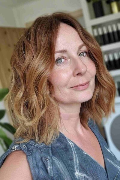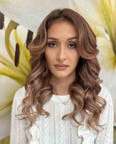Opt for a medium-brown copper-bronze hue. The highlight of this color is its rich bronze undertone and the dazzling shimmer of copper. Adding soft waves enhances that radiant shimmer.