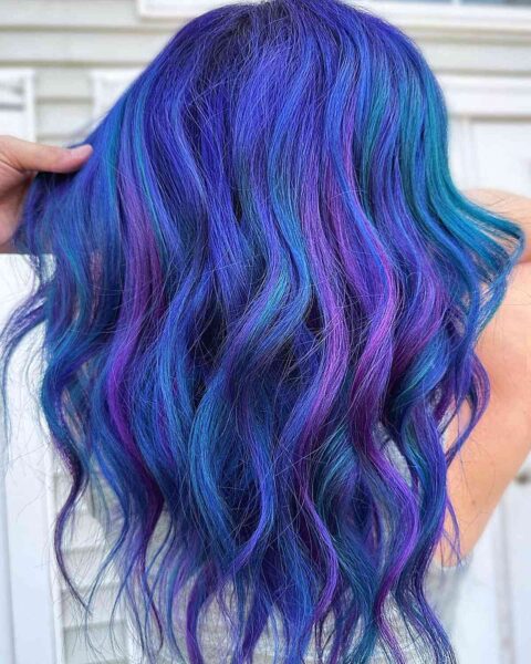 Dynamic blue-purple waves are a striking choice for those who want to make a memorable statement with their hair. Avoiding excessive heat styling and prolonged sun exposure is important to maintain vibrancy. These can cause color fading. Invest in sulfate-free shampoos and conditioners formulated for color-treated hair. They help preserve the vibrancy and health of your locks. Deep conditioning your hair can also help keep it moisturized and prevent damage. With the right care and styling, you can easily rock blue-purple waves.
