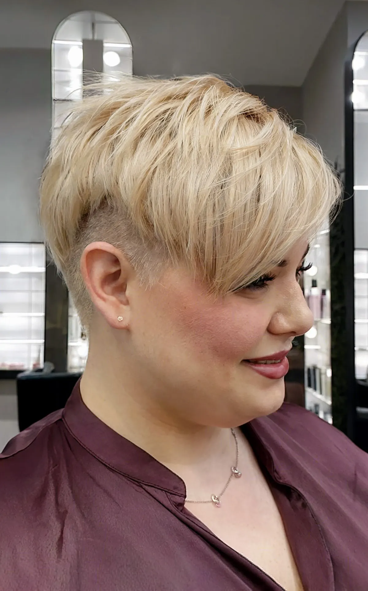 An chic undercut pixie offers a multitude of styling possibilities and vibrant movement. Keep in mind that a pixie with shaved sides will require frequent visits to the hair salon, usually every 3-4 weeks, to trim up the undercut and maintain a pixie cut with an edge.