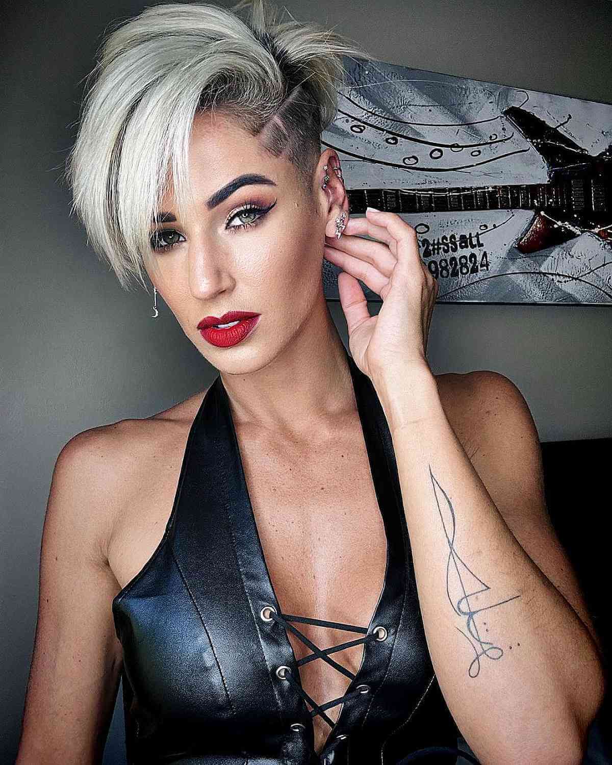 Pixie hairstyles are ideal for those seeking a rock n roll vibe. A chill and bold pixie cut serves as a great illustration. Pixie cuts are easy to style daily but may require regular maintenance at the neckline.