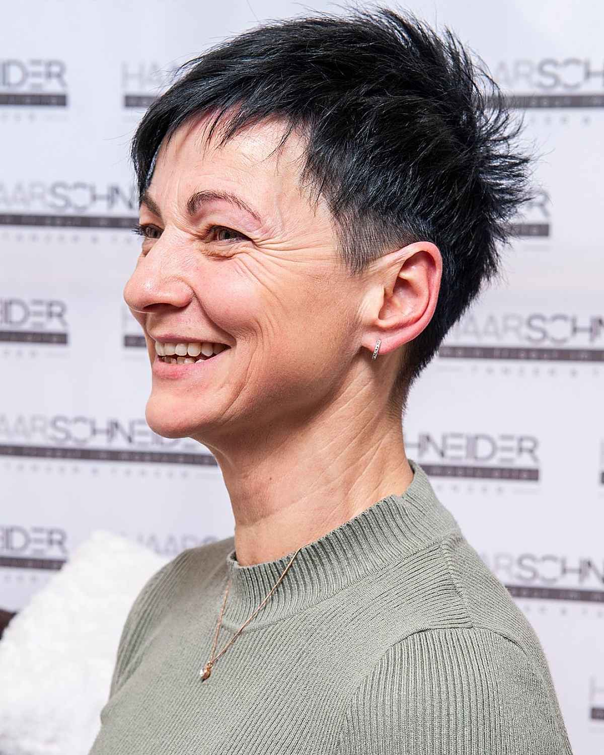 A stylish lixie for women above 40 is longer on one side with a few seamlessly blended layers. Pixies for 40-year-olds are very common, but each one is unique. For ladies with a round or heart-shaped face, having your face-framing fringe end right below your cheekbone is the perfect style to wear these edgy-styled pixie cuts.