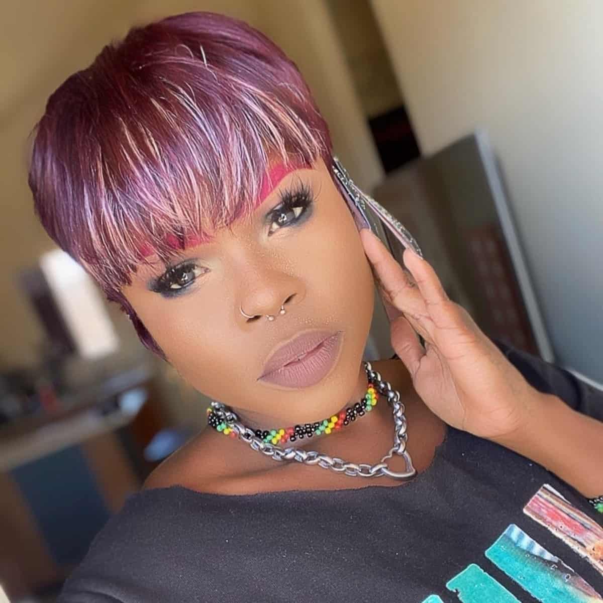 A trendy pixie cut for African-American women is a variant of a crop generally longer on the top with a shorter back and sides. These hairstyles can be worn straight or curly. For a bold touch, ask your stylist to add a pop of purple color to your dark hair that suits your skin complexion.