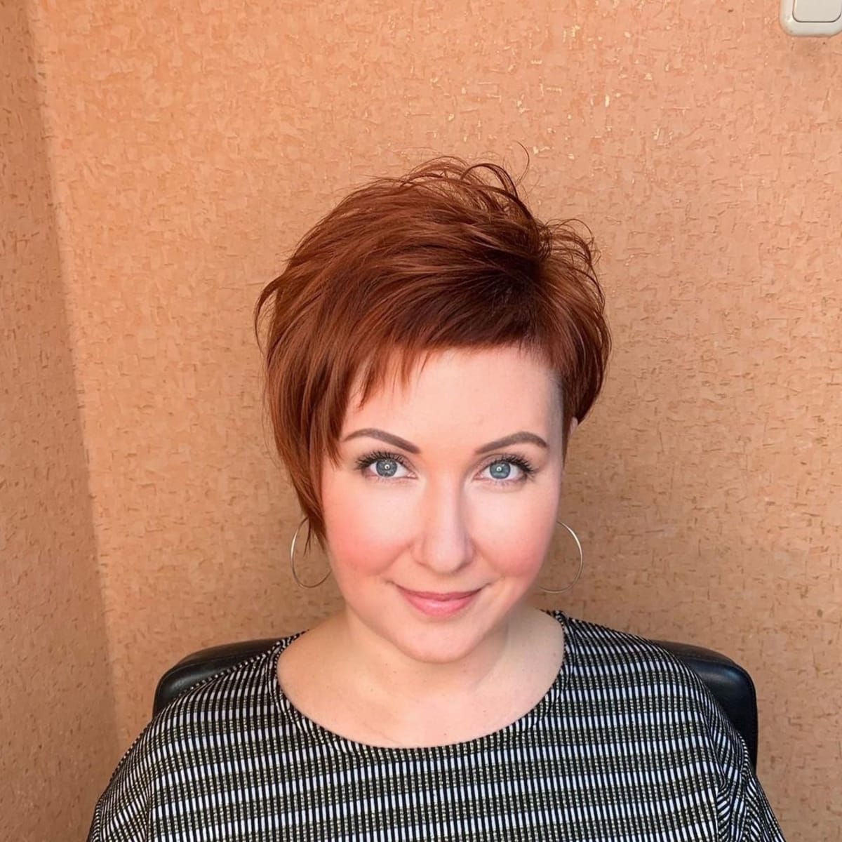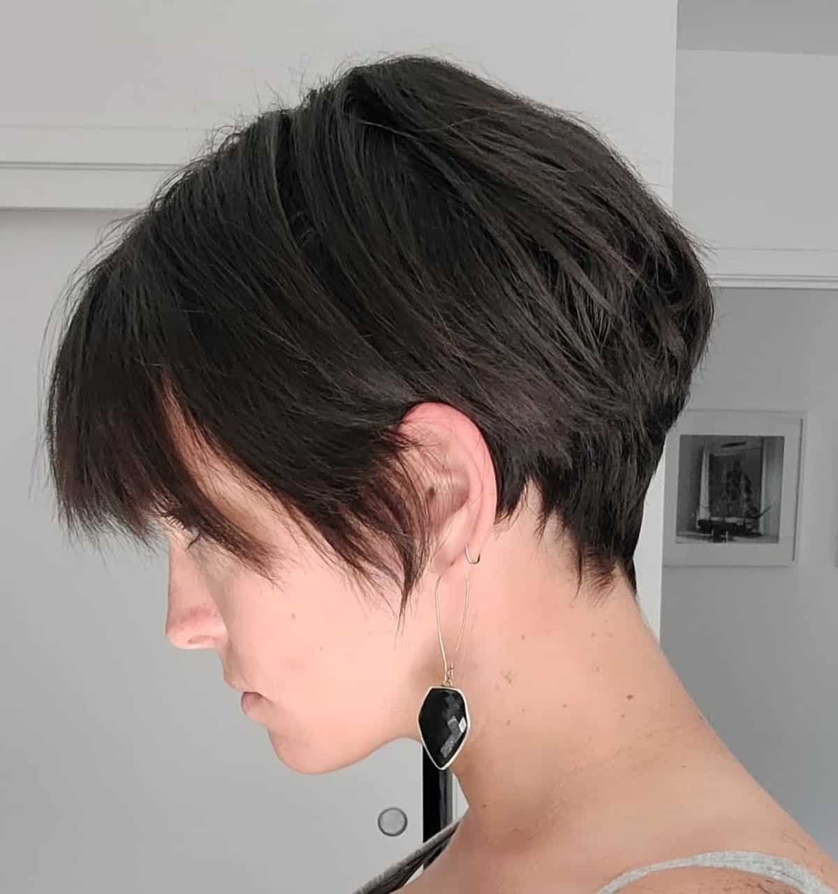 The charming short shaggy pixie hairstyle is shaved on just one side of the head. It’s perfect for women who wish to minimize the bulk of their hair.