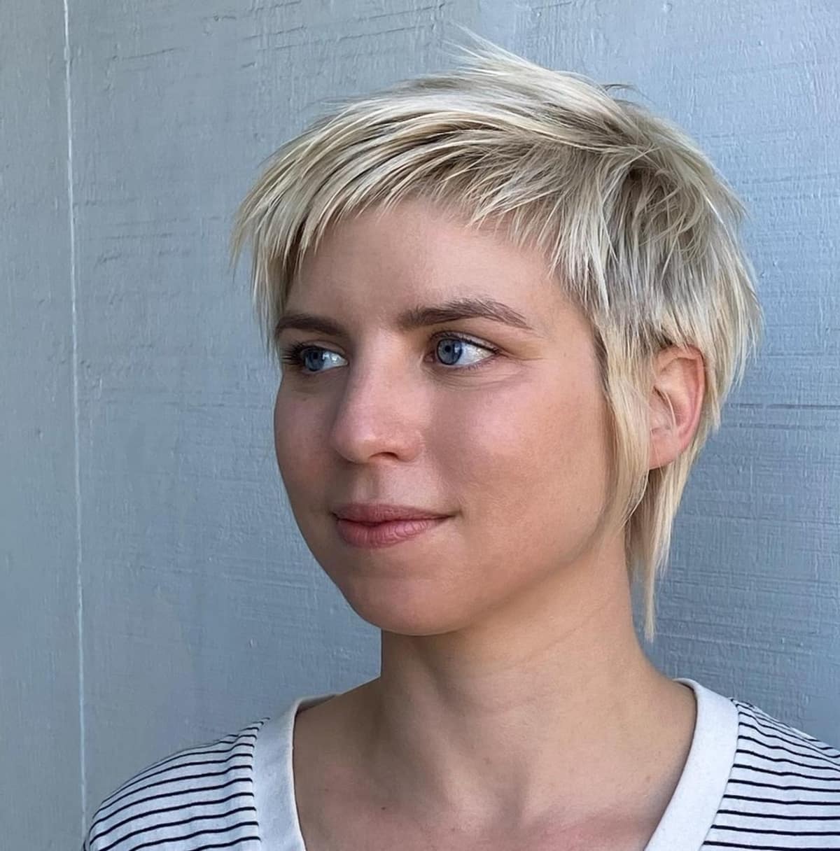 Regarding hair care and upkeep, Nuzum mentions that these cuts require daily attention and are not suited for those seeking low maintenance. “These short edgy styles also necessitate salon visits every 4-6 weeks,” she notes. “Even the slightest amount of hair growth can significantly impact how you style your hair.”
