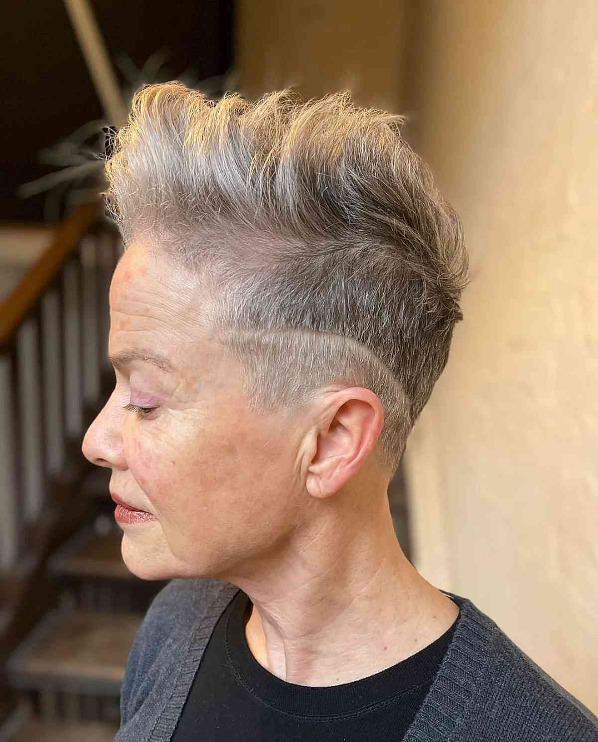 If you’re considering a fresh style, then a side-parted pixie cut with shaved lines might be the perfect choice. This look highlights the contours of the face and infuses an air of boldness and intrigue. When styling it, ensure you use a strong hold wax or pomade to sharpen the edges and secure the sides. For added definition, employ a comb to form a more pronounced part line on the side you wish to emphasize. A small round brush will also help create volume at the crown, enhancing the overall look. Remember, you’re not locked into one design; it can easily be altered after a few weeks of growth.