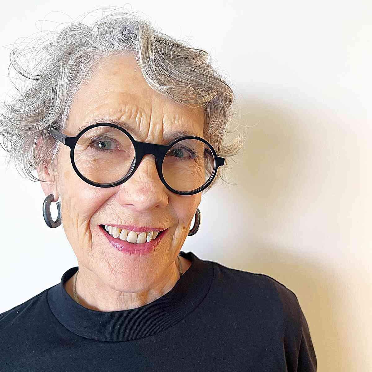 A short shaggy cut for senior women with petite rims highlights the softness of the face in a relaxed manner. These hairstyles can be contemporary while shaggy and textured at the ends of the hair.