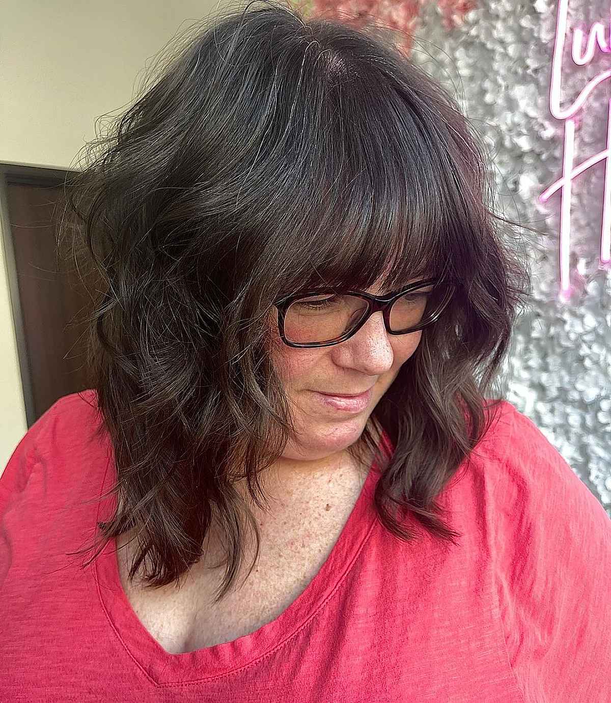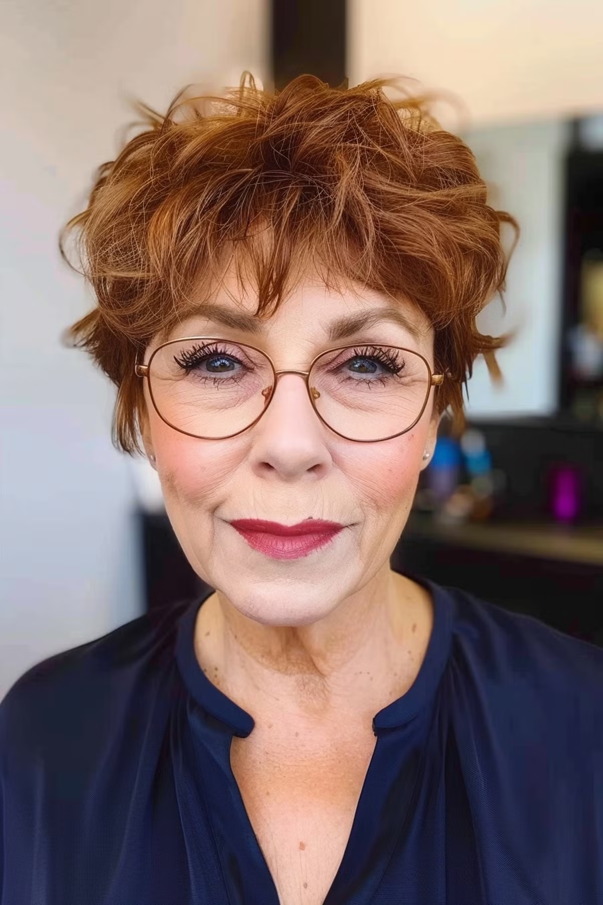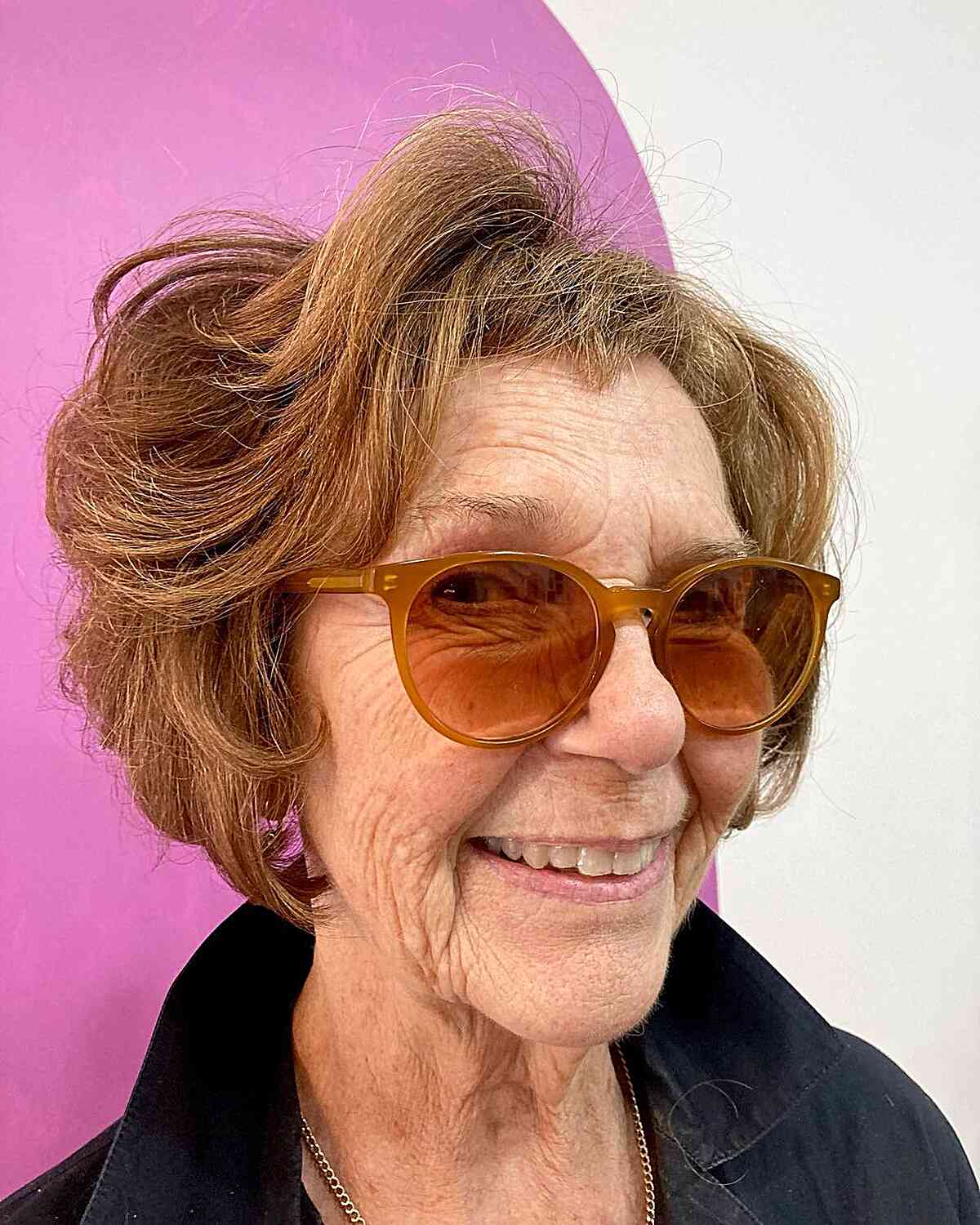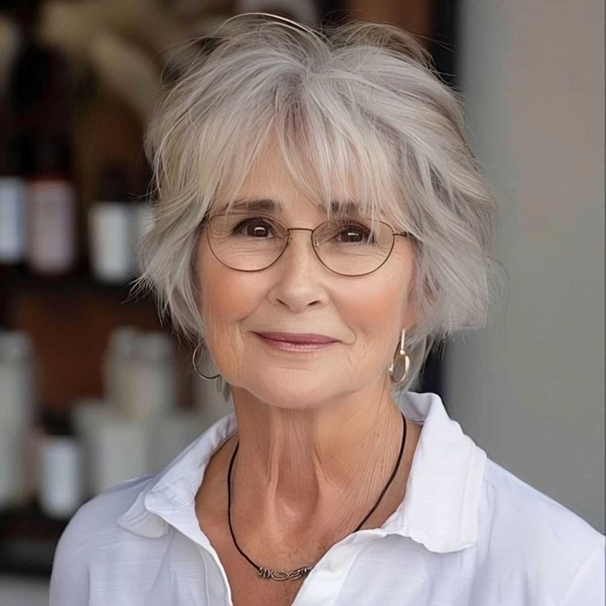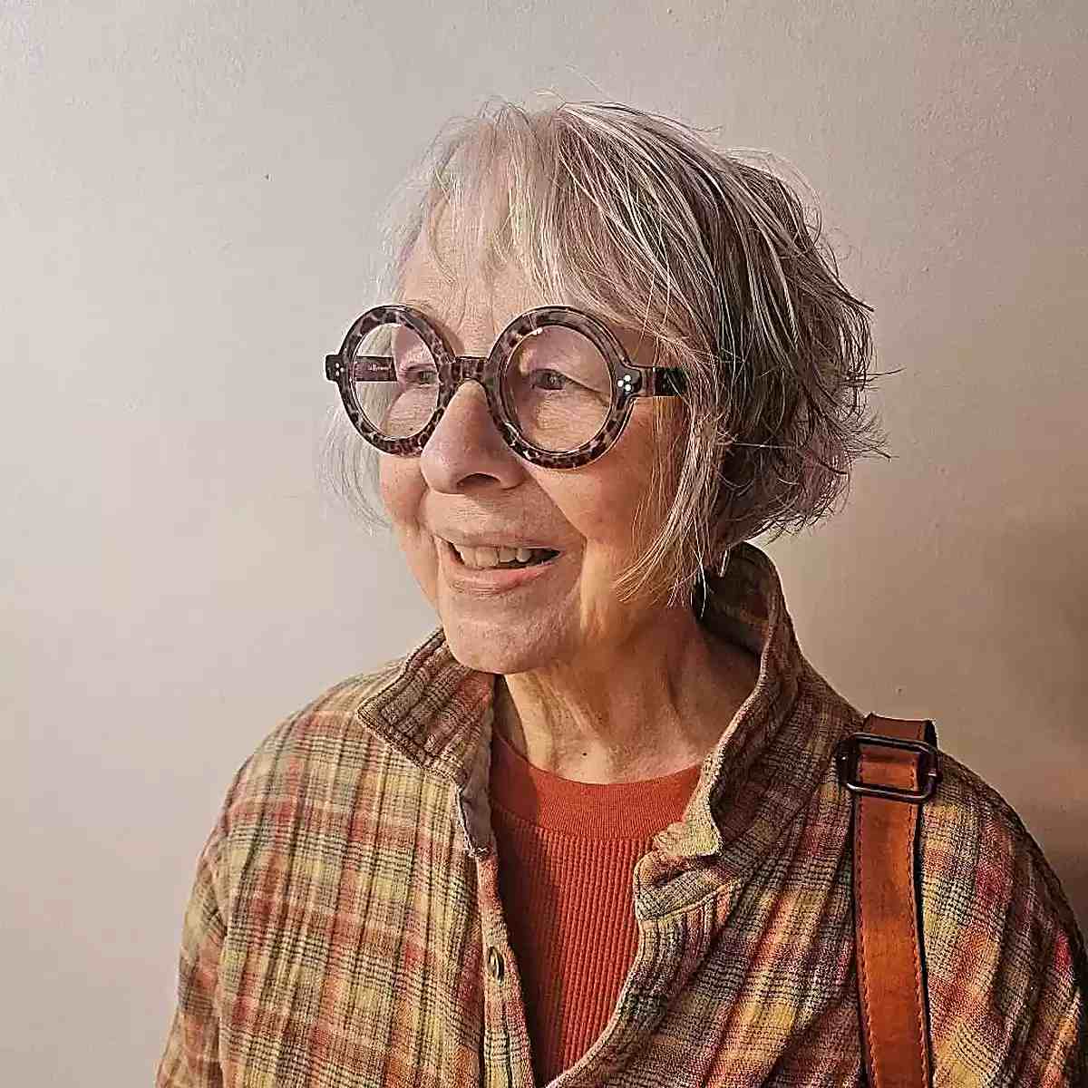 Chic Shaggy Hairstyle for Senior Women with Petite Rims