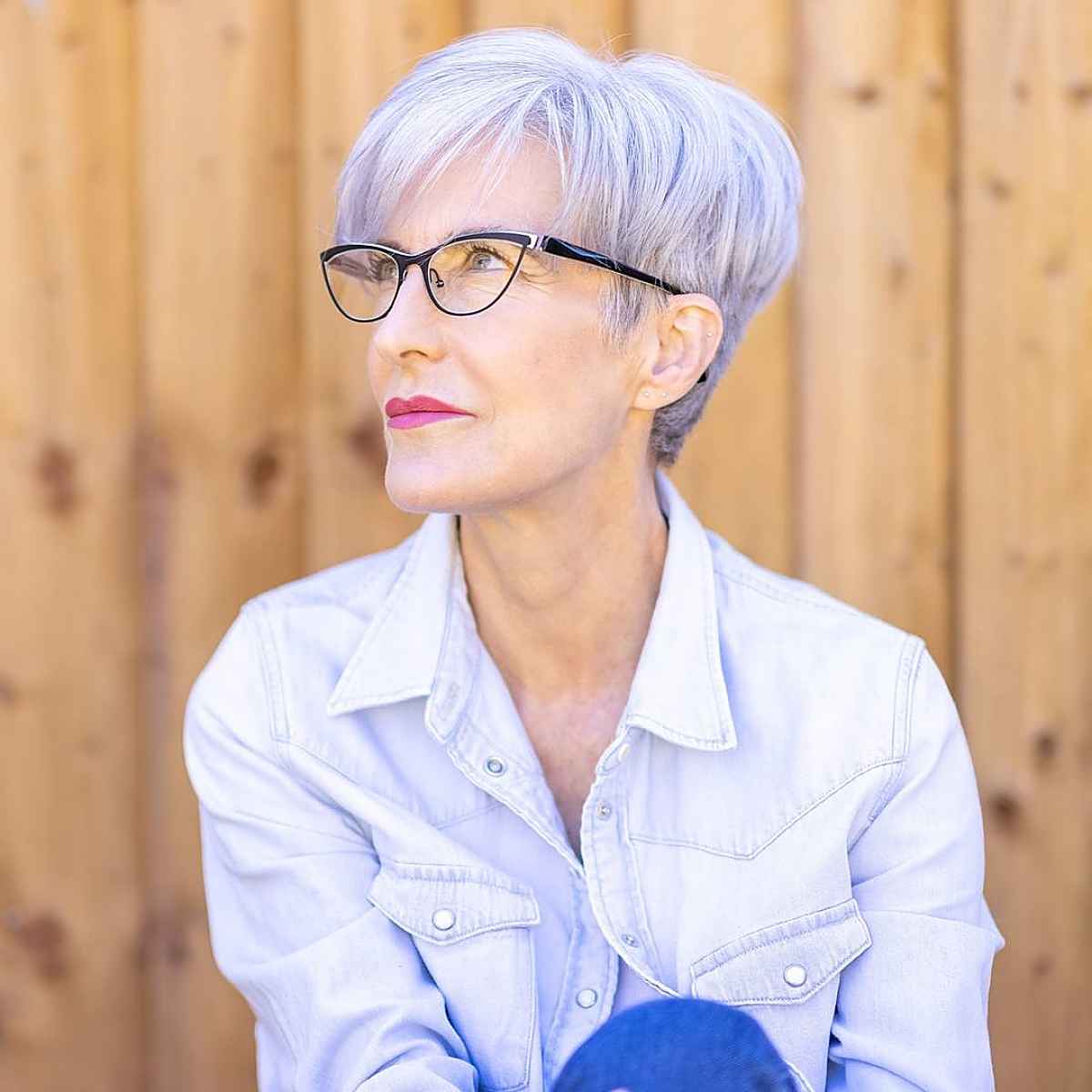 Elegant Silver Long Pixie for Sophisticated Women with Glasses