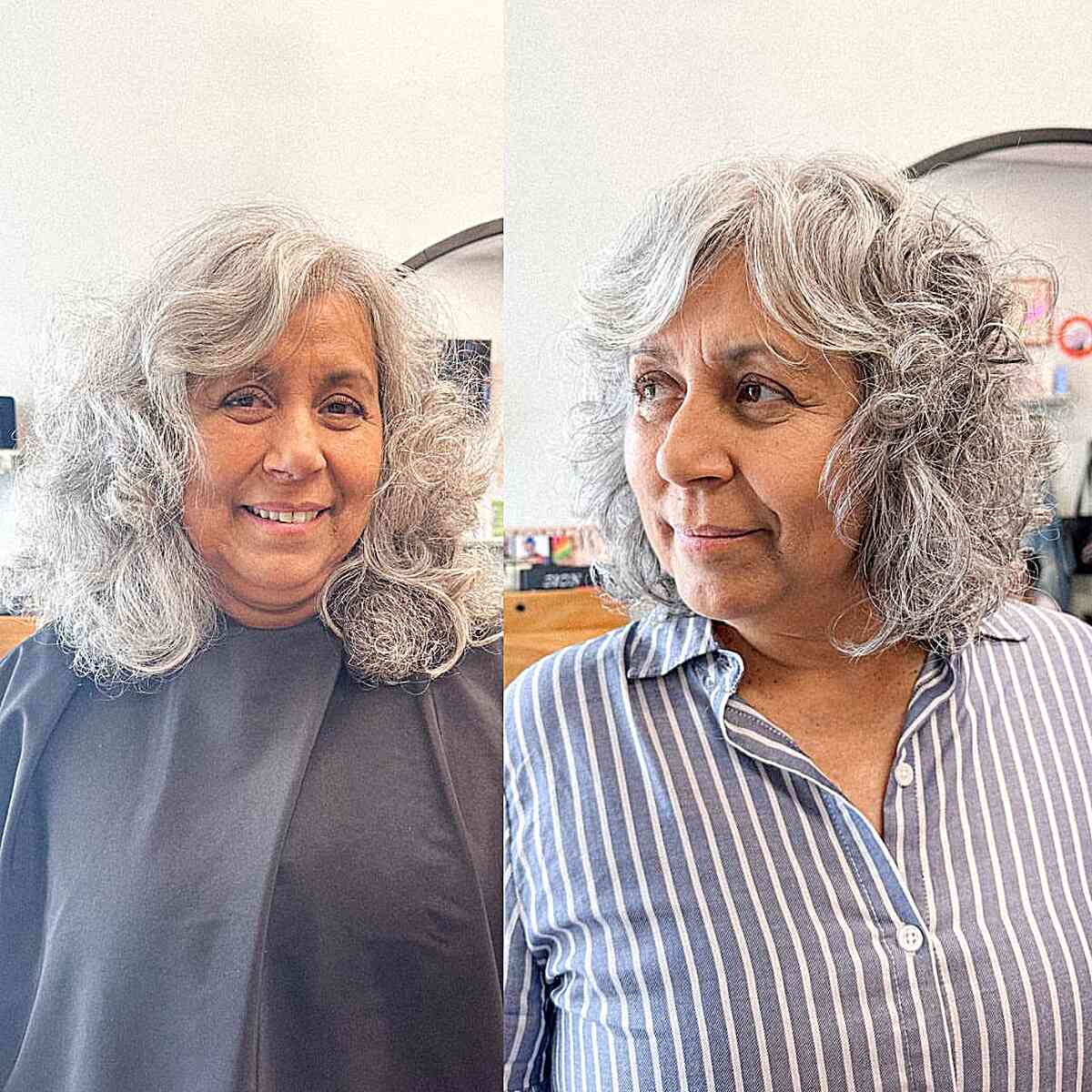 The appeal of textured hair for women over 60 is that it adds extra volume and helps conceal thinning hair. The lively texture contributes to a more youthful look, too!