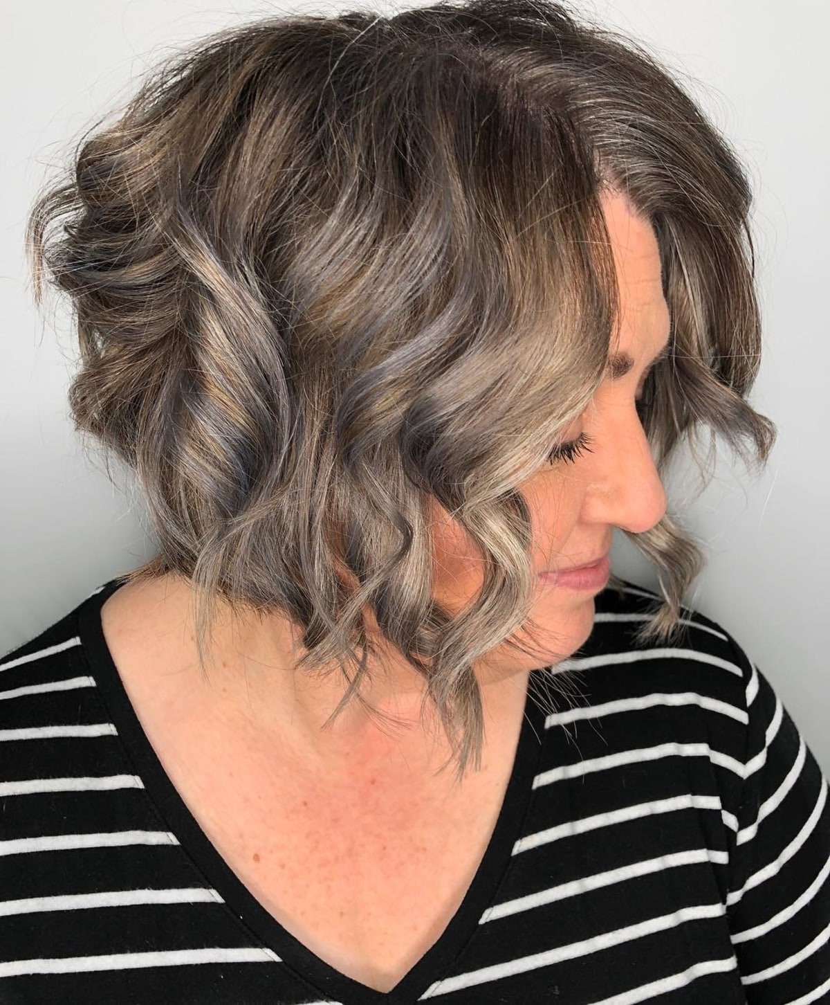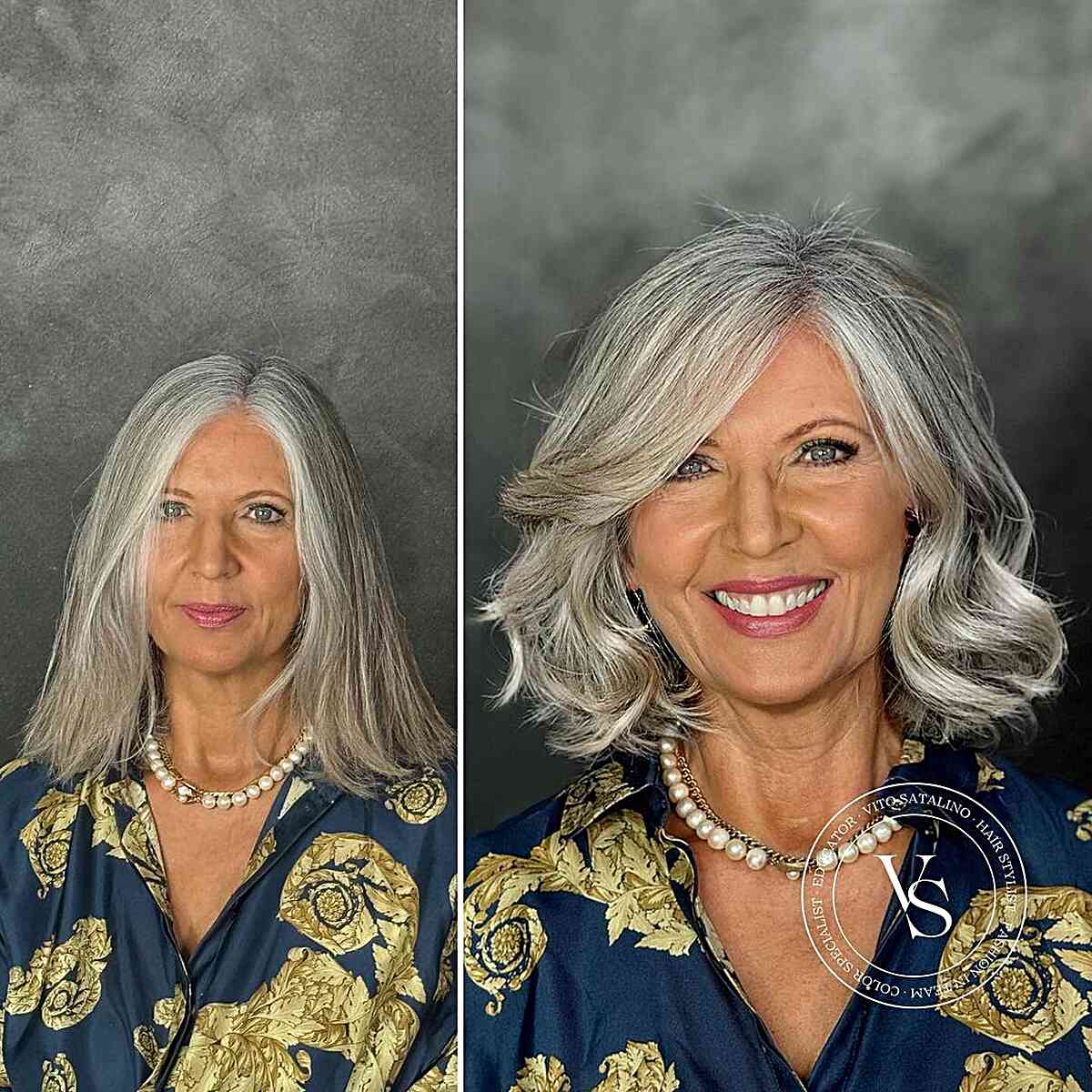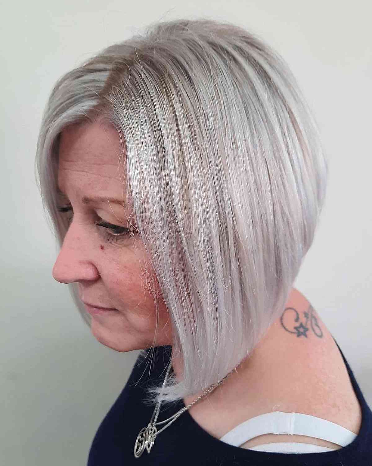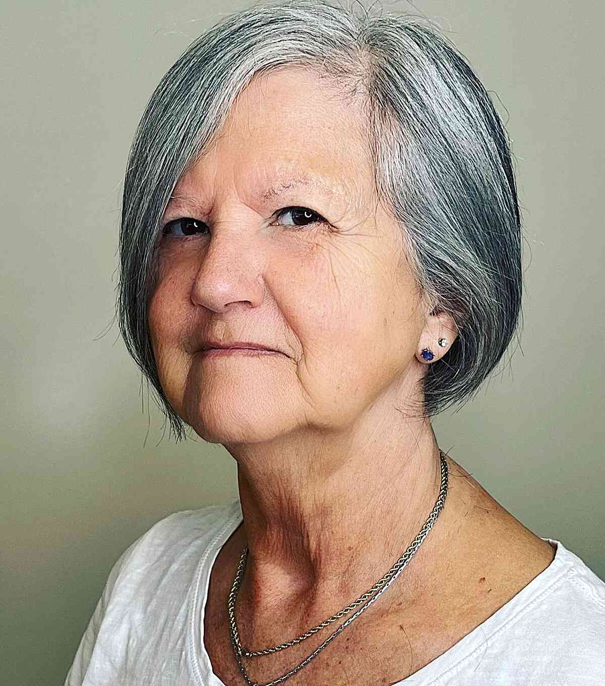 An airy grey bob is an ashy-colored haircut with a lot of movement. Bobs are a very stylish look that all mature women can embrace. It can be tailored for thin, medium, or thick hair.