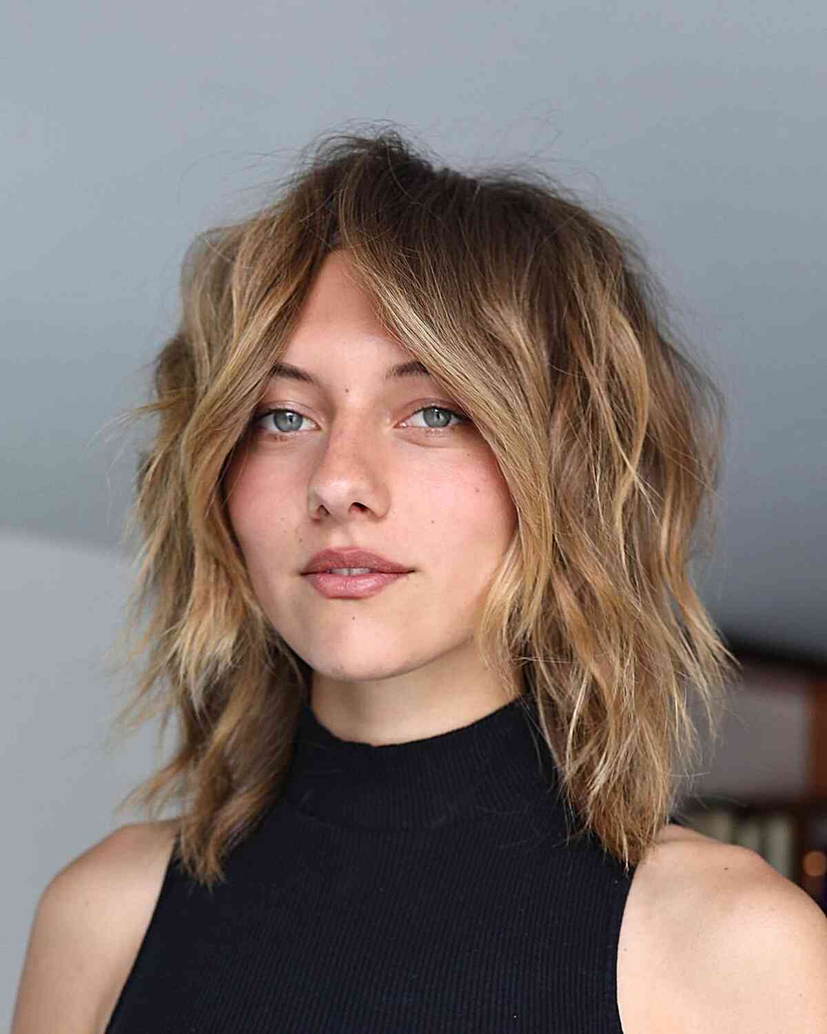 An exquisite shaggy bob looks best with gentle waves. It compliments any face shape, particularly a rounded one. These hairstyles are the ideal length to achieve versatility.