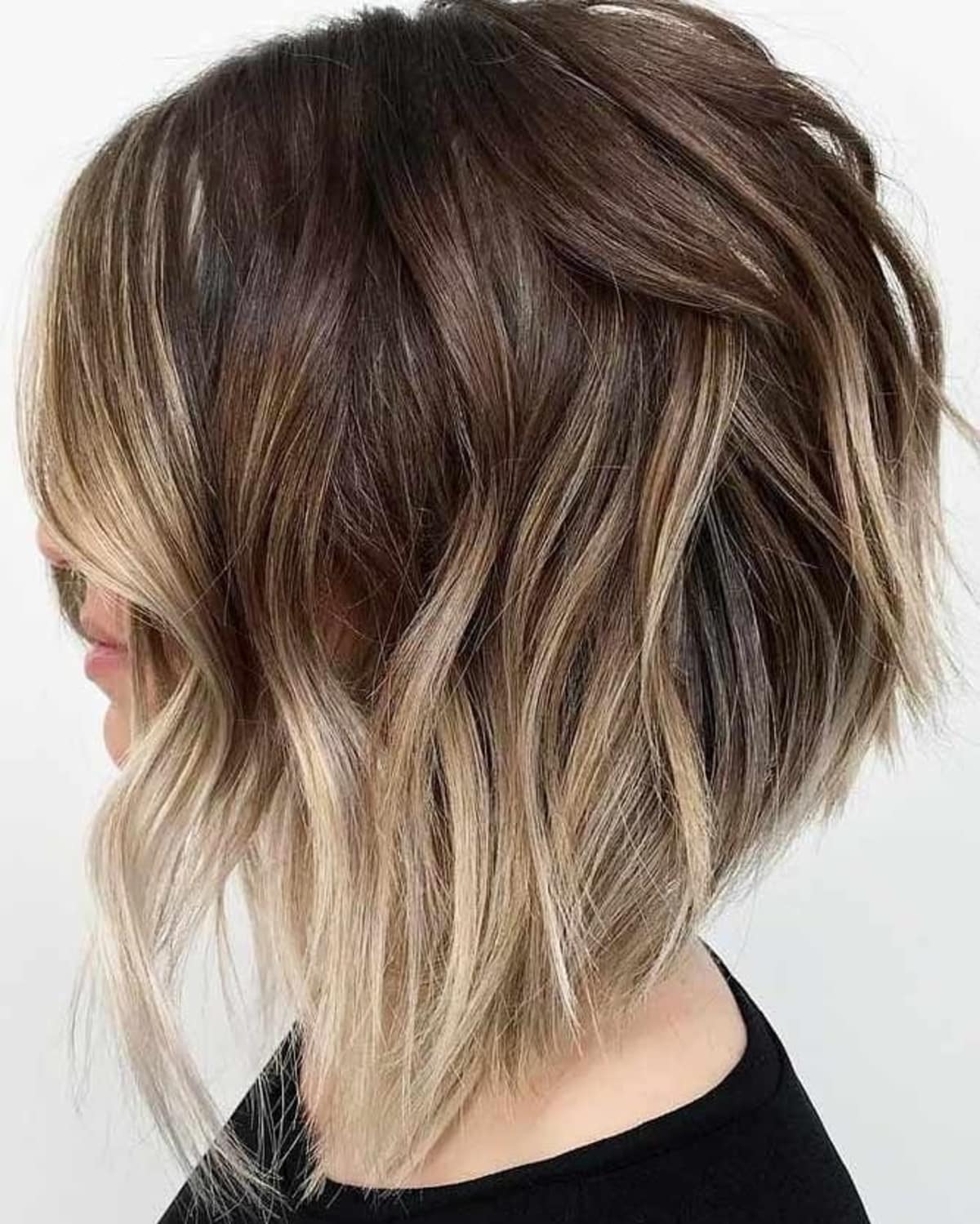 A stylish long, messy bob with blonde ombré is what you need if you’re interested in modernizing your current hairstyle. Beach curls are all the rage and can be achieved with a 1-inch iron. Start curling mid-shaft, leave the ends straight, and create stunning wavy curls. Ombré color is a fabulous choice to go with a bob. The dark roots hide any growth, making it a low-maintenance style to keep.