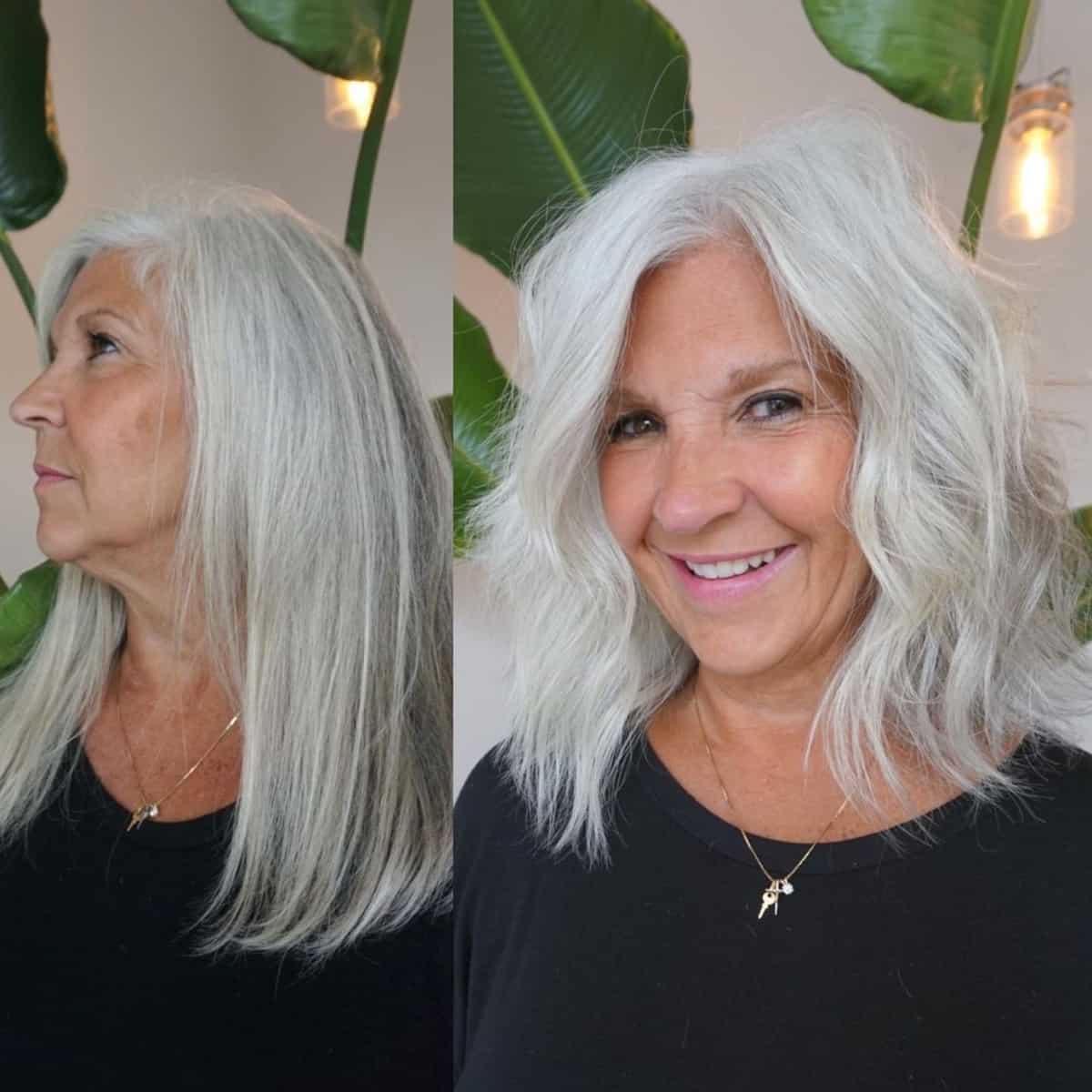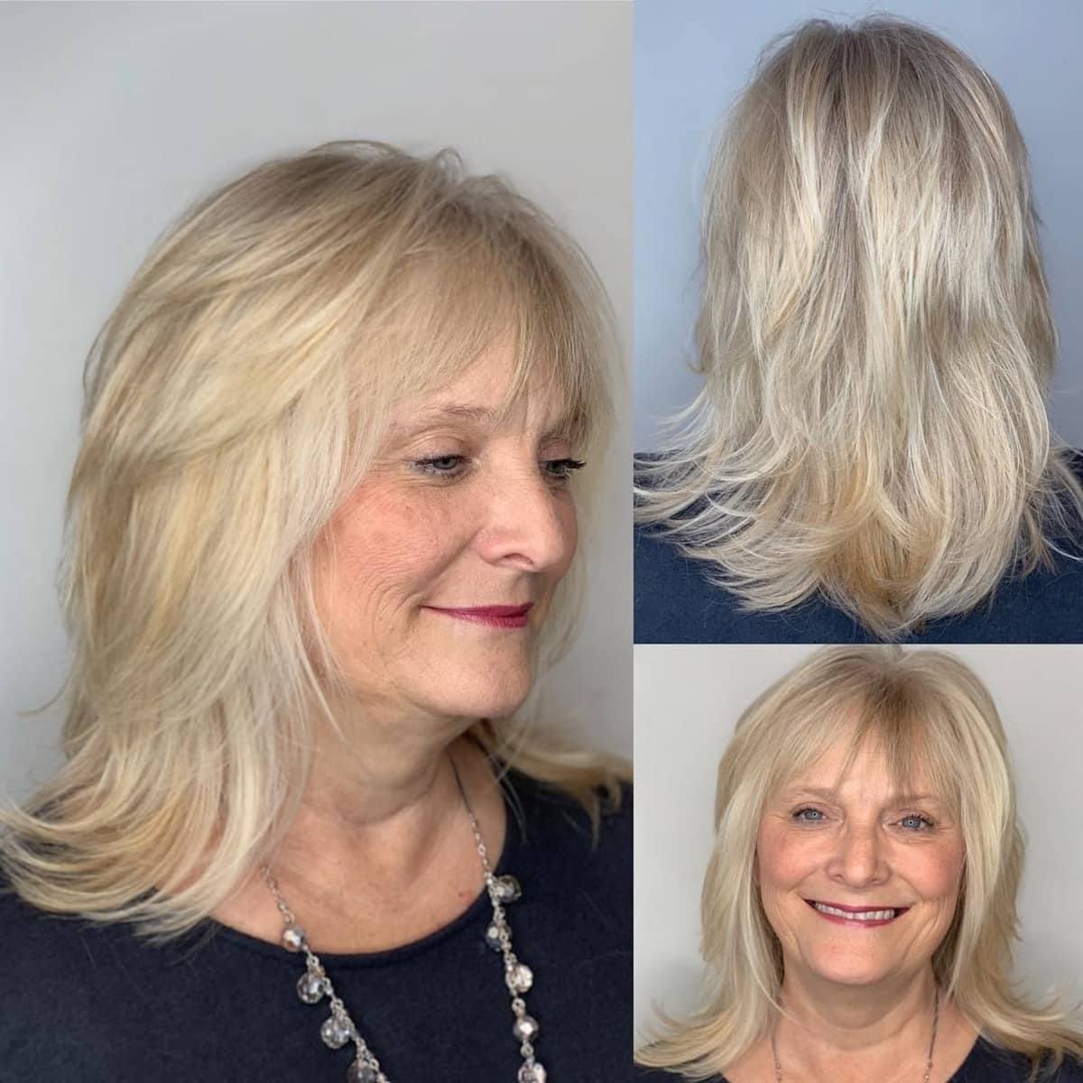 A long bob for mature women is unparalleled! Who else can rock a feathered, shaggy hairstyle other than ladies who are over 50 with fine hair? The texture of this kind of style brings an abundance of vibrancy to the hair.