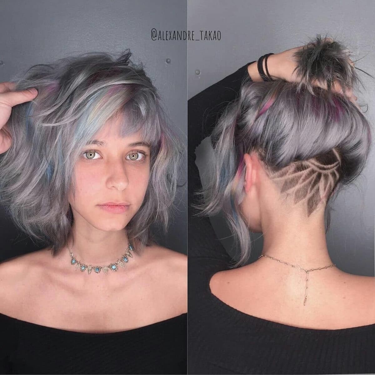 The textured lob with an undercut is ideal for women who wish to discreetly decrease the volume of their hair while maintaining a fashionable look.