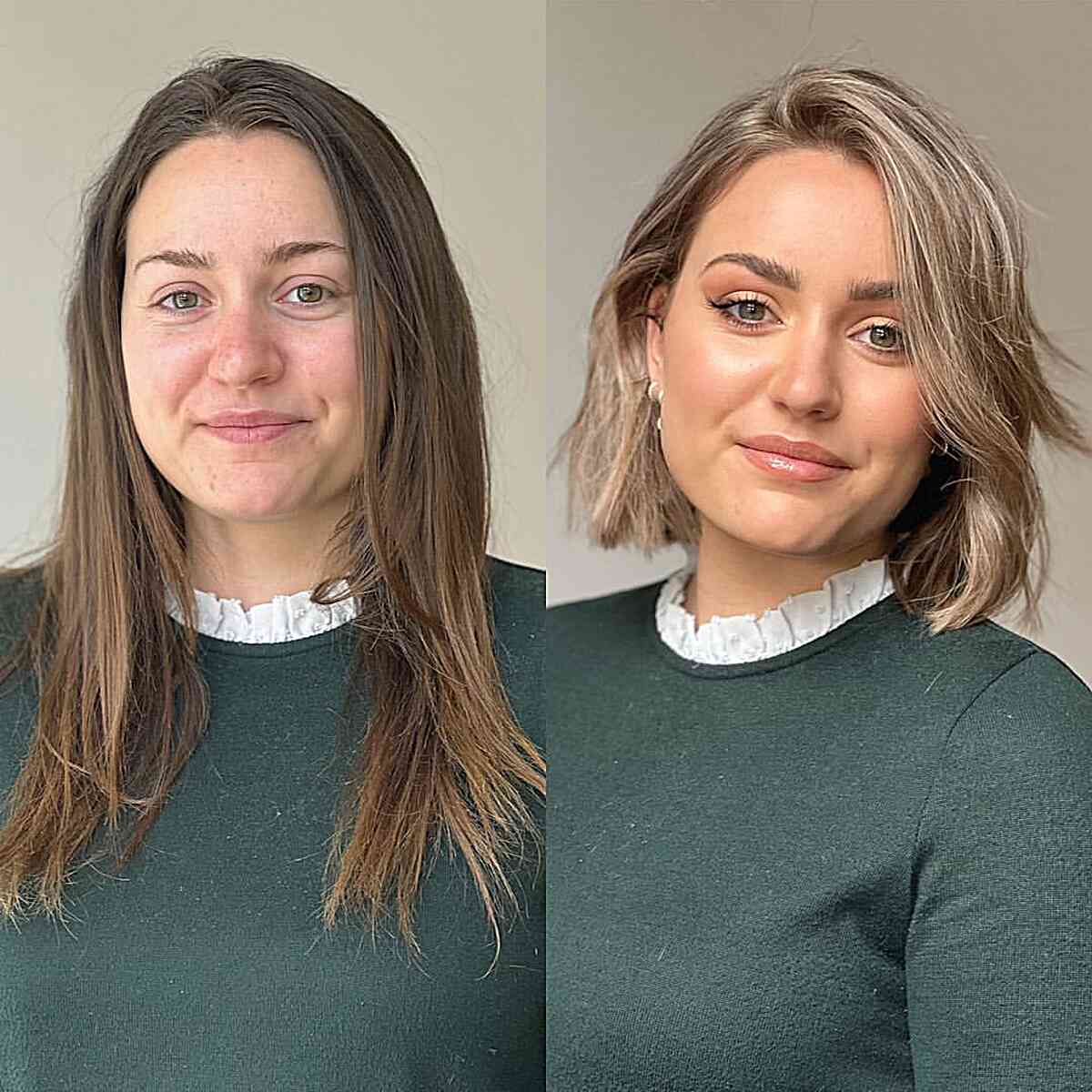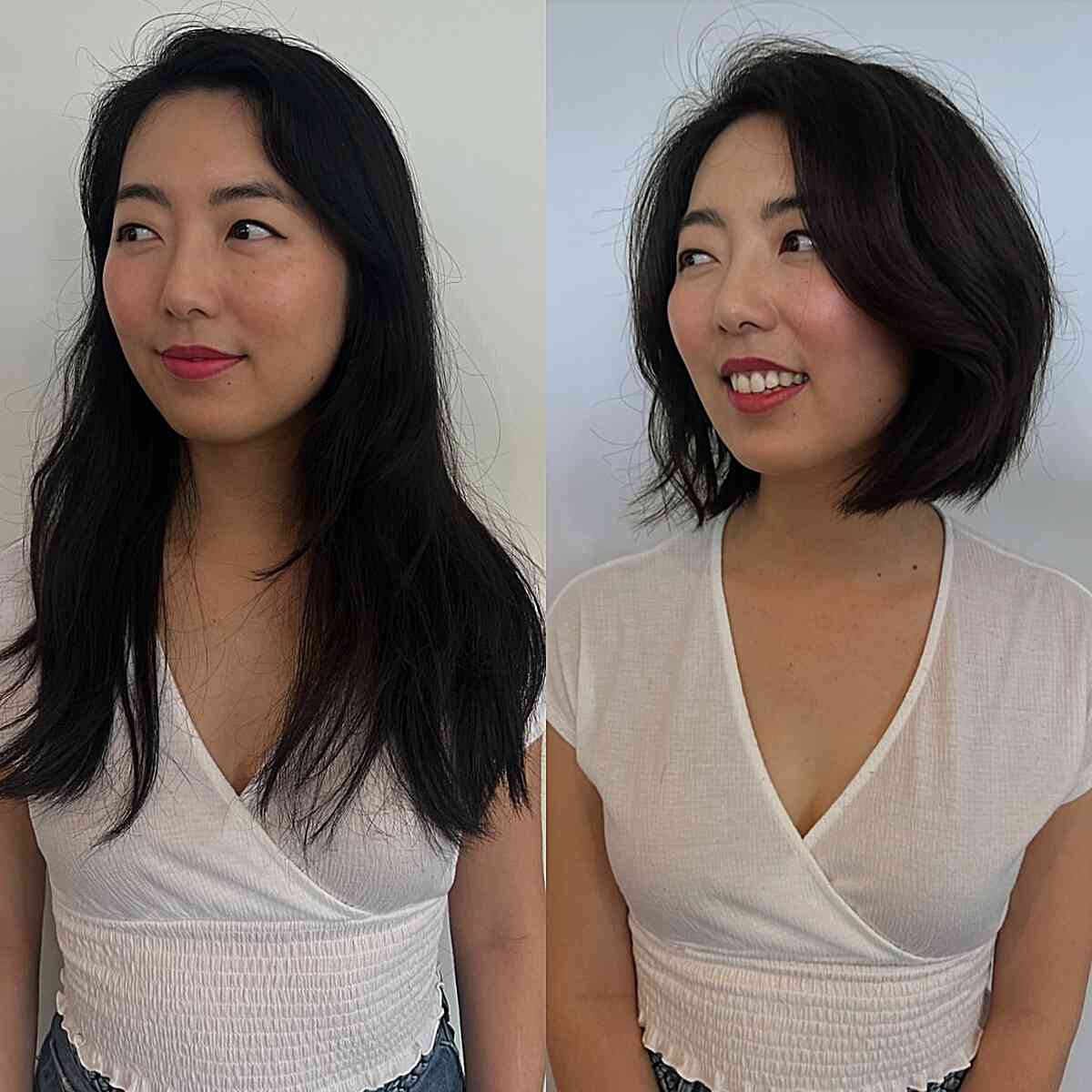 A chic bob transformation will enhance your appearance and elevate your confidence. Request a length that falls just above the shoulders that feels right for you. Additionally, ask for medium-length layers to create a contemporary silhouette. Consider blow drying with a medium round brush to add soft waves. You may find that curling isn’t necessary.