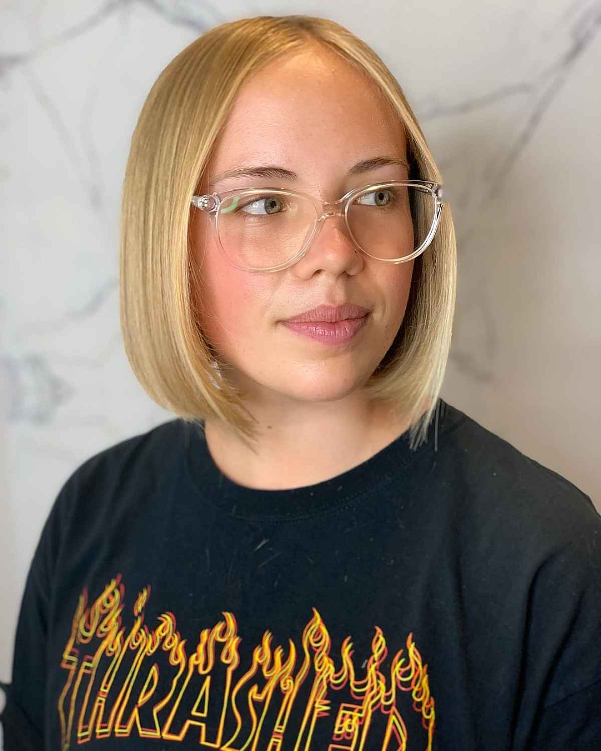 A chic lob haircut for women with eyewear is a fantastic choice to complement your frames. Wearing glasses can become the highlight, especially with fine and short hairstyles.