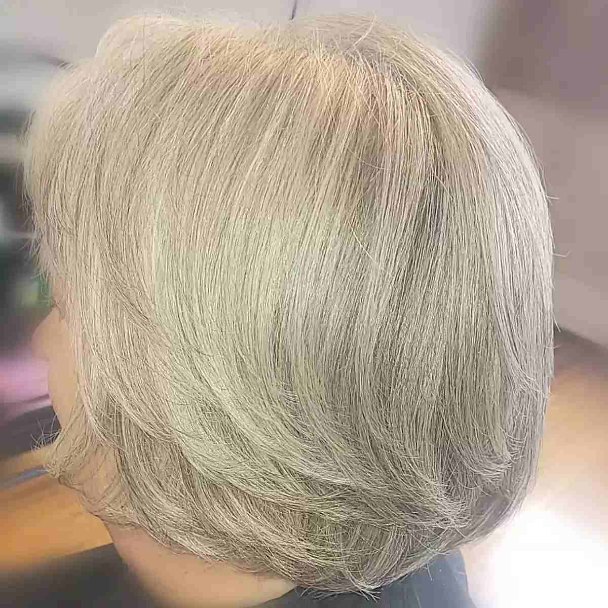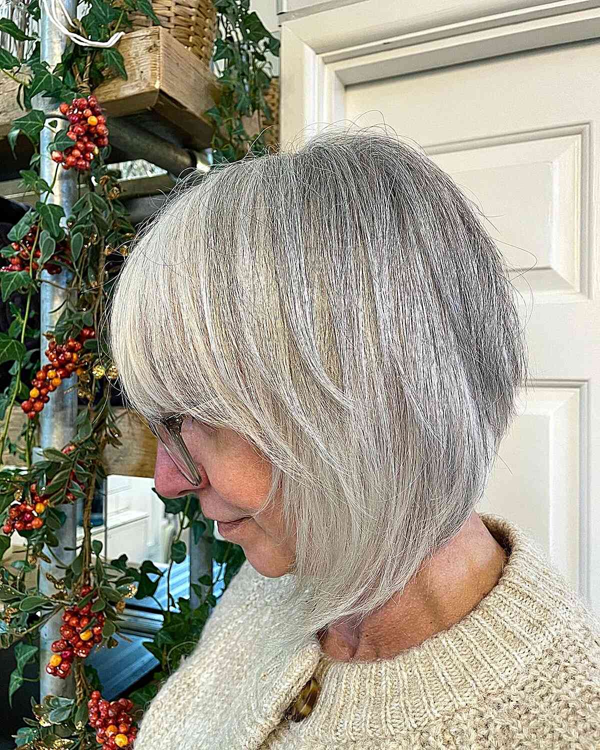 This is an effortless gray layered hairstyle. A short layered bob will provide volume to your hair and is particularly ideal for finer hair types. Consider incorporating feathered ends into your layers to achieve a stunning butterfly look.