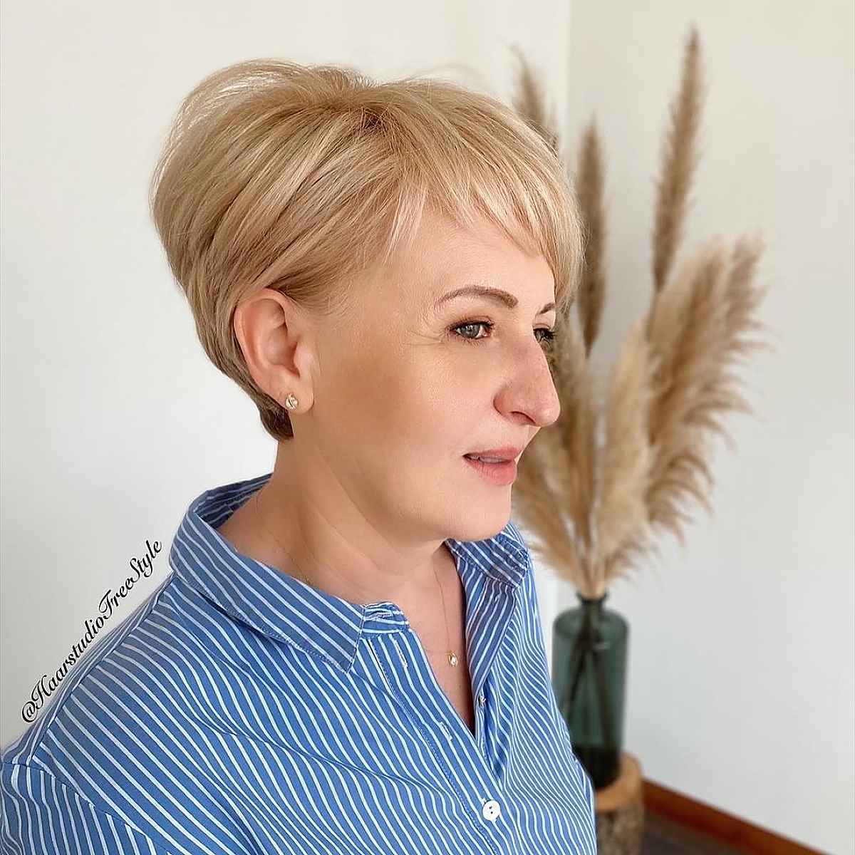 Explore a low-maintenance pixie bob for women over 40 for a vibrant and effortless look. Ideal for fine or thick hair, short styles need minimal styling effort.