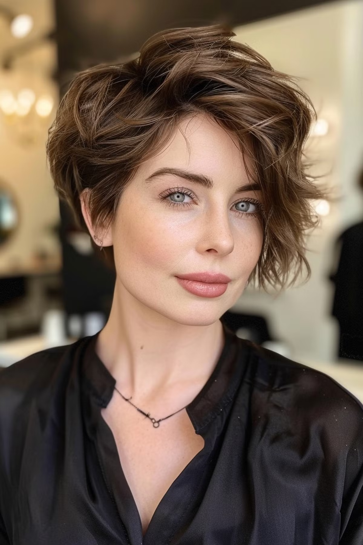 A playful pixie bob haircut combines the charm of a pixie hairstyle with the refinement of a bob cut. This delightful style offers the perfect blend of both worlds. Messy looks are simpler to maintain and provide a gentle appearance, allowing you to embody both femininity and a touch of edginess simultaneously.