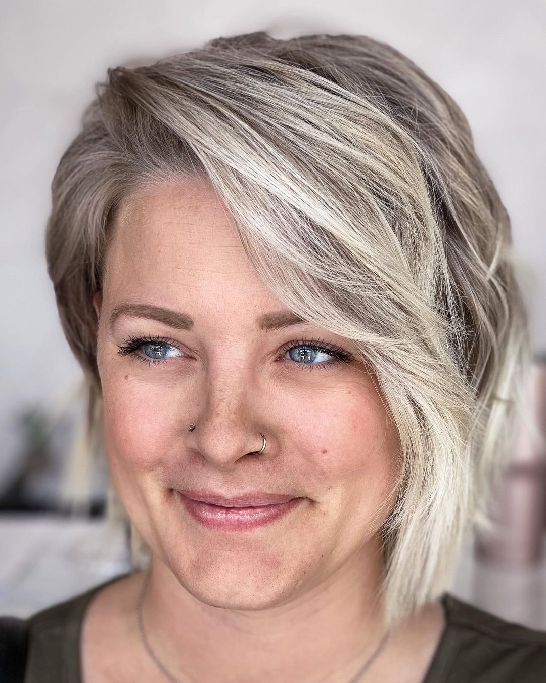 An elegant blonde asymmetrical bob combined with delicate bangs is one of the finest styles for a playful, spirited appearance. If you are a woman with medium to thick hair, a bob can be tailored to a silhouette that perfectly complements you.