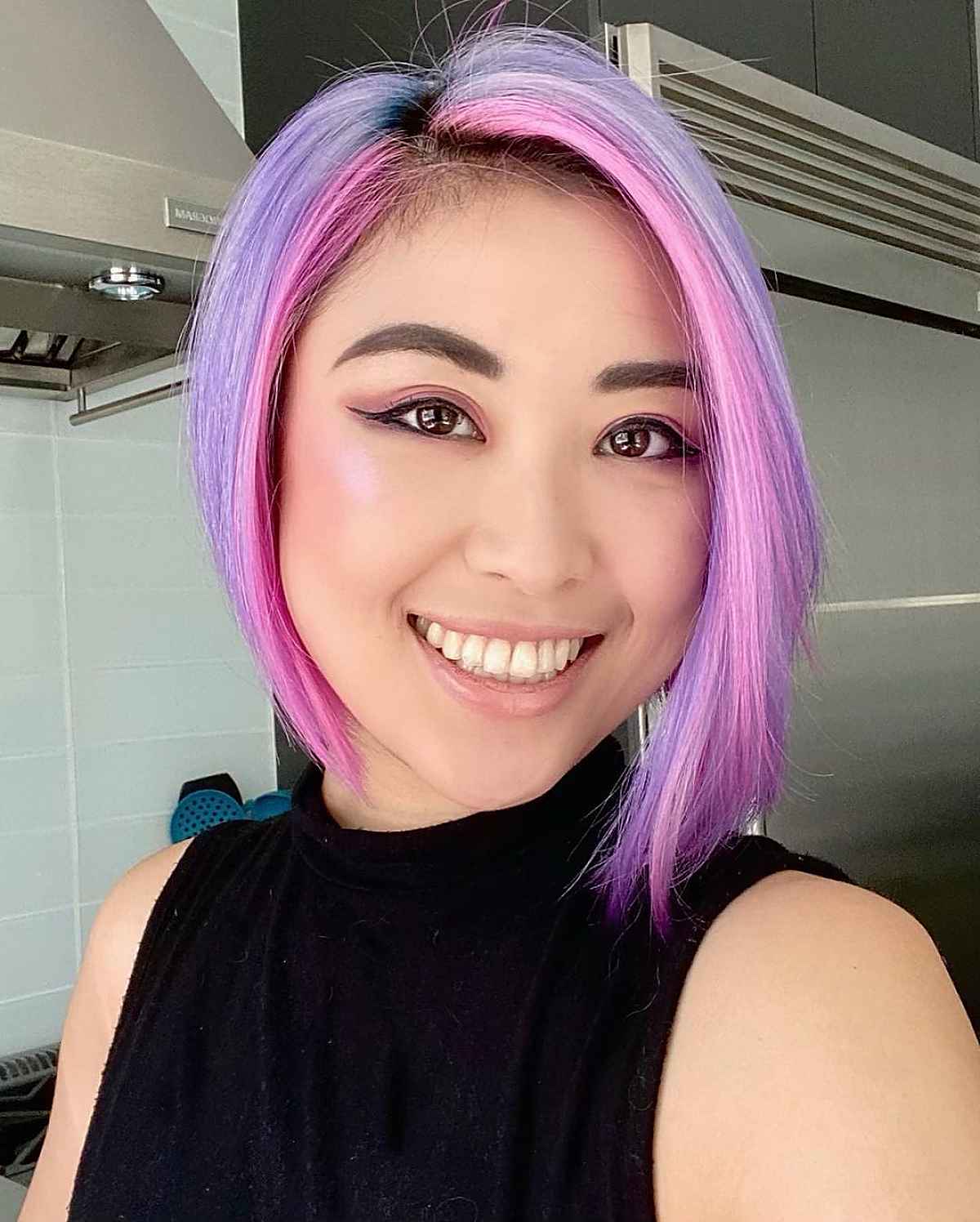 Consider a chic pink and purple asymmetric bob for something bold. These fashion colors make a statement but remember that they require significant upkeep. Often multiple visits to the salon are needed initially, and very regular appointments are essential to keep these shades lively.