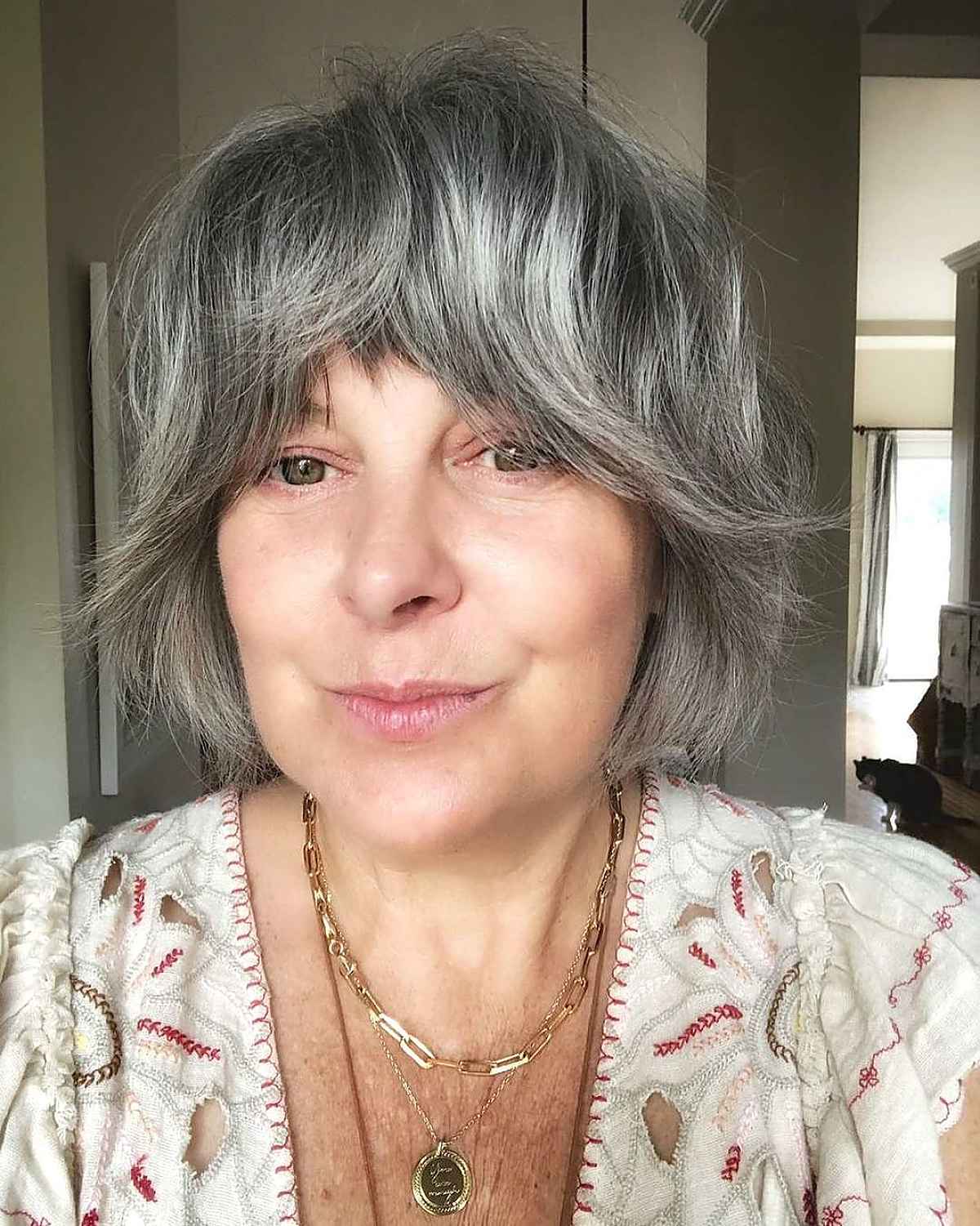 Soft bangs for mature women with short hair are the ideal short, easy-to-manage haircut. Explore this style to gently conceal forehead lines and add volume to your finer grey hair.