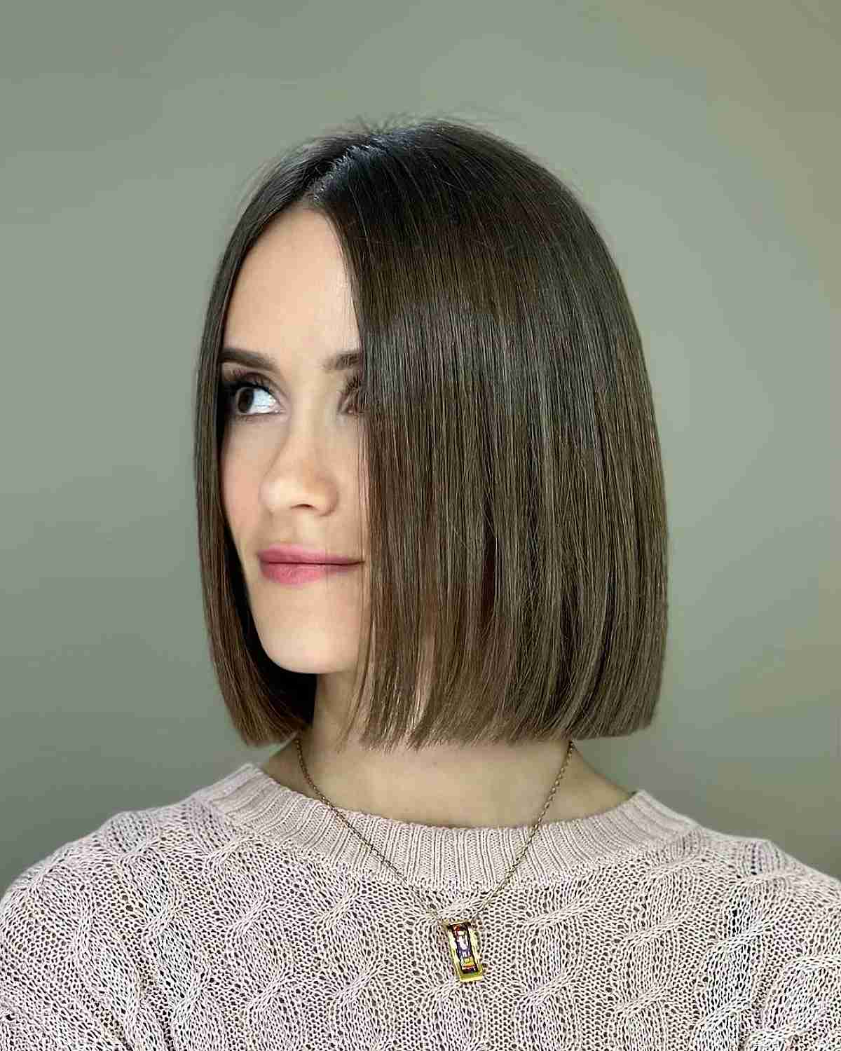 #7: Jaw-Length Trendy Bob with Center-Parted Bangs