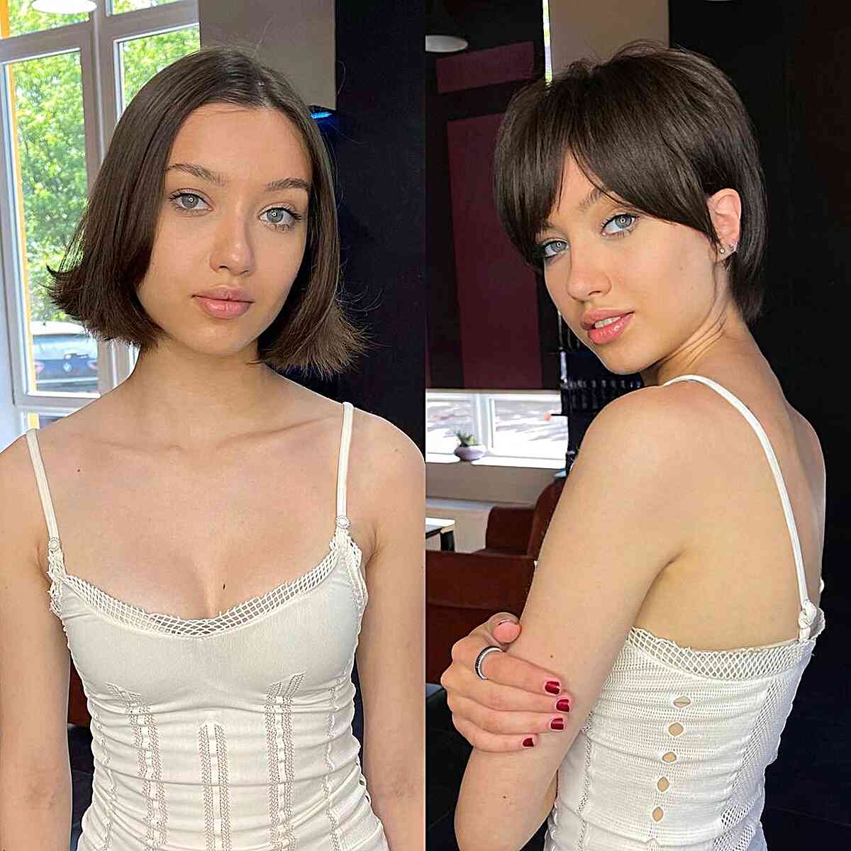 Fringe for short brown hair is perfect for the upcoming warm seasons. Short hairstyles enhance an average silhouette with this fashionable approach, thus providing styling versatility for all hair types.