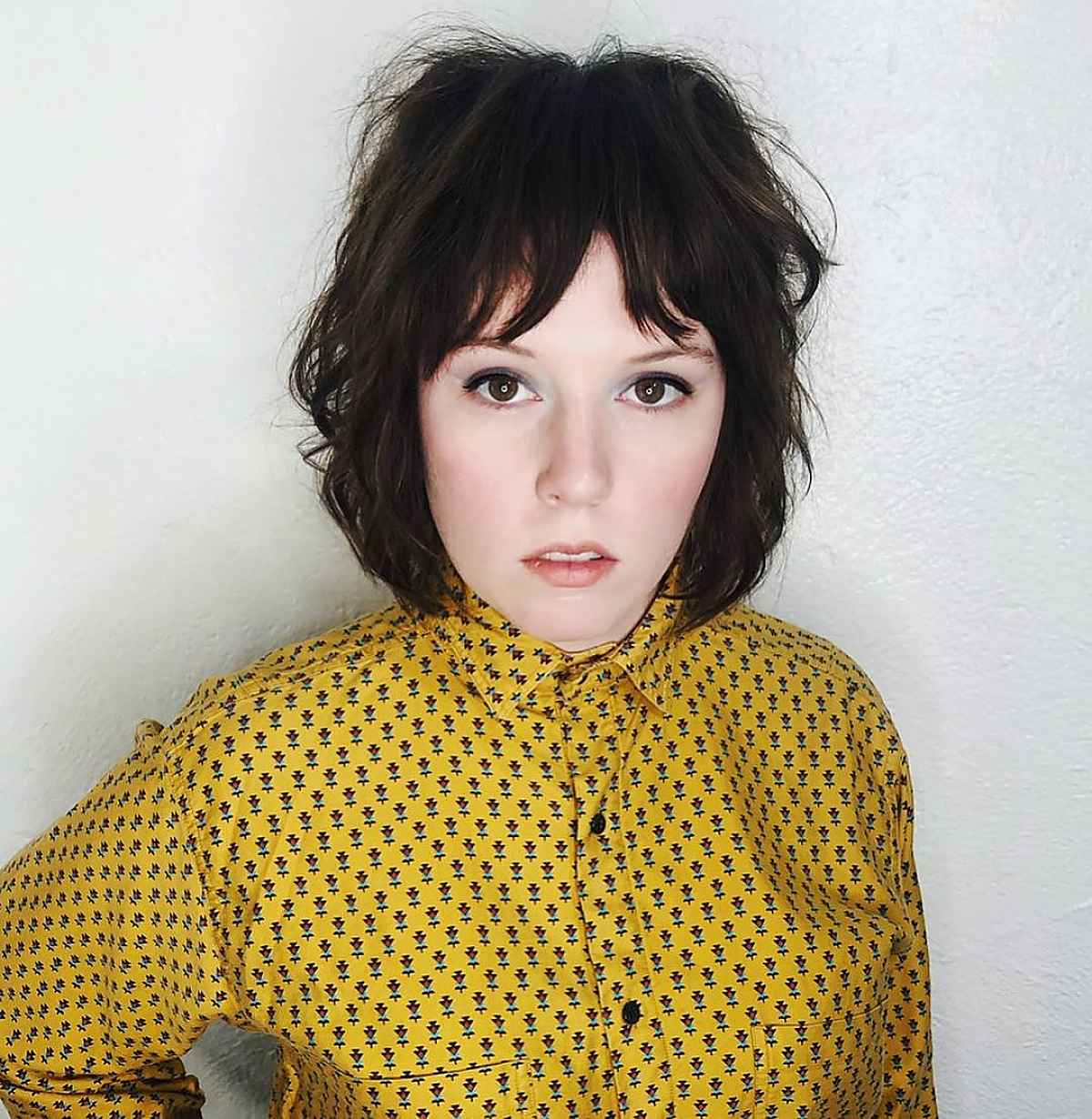 #9: Curly Bob with Soft Bangs