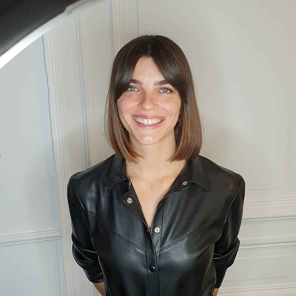 Consider this chic bob with curtain bangs. If you wish to try this look, consult a stylist who specializes in bob hairstyles.