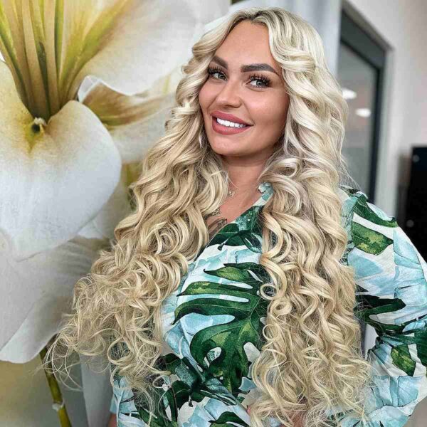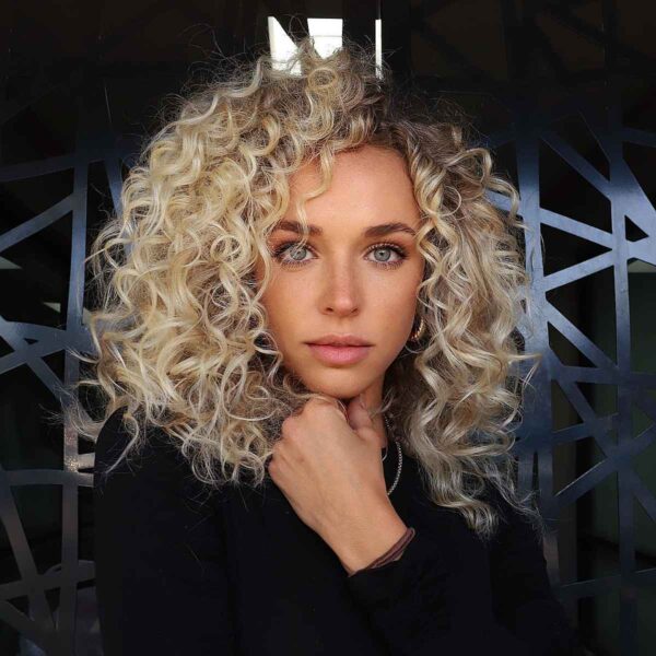 However, it’s assured that with the right hair care products for hydration and strength, along with regular visits to your hairdresser, these fluffy blonde curls will provide you with wonderful texture and movement! Styling blonde curly, wavy, or spiral locks is another thrilling aspect – go long for a complete mermaid-like appearance or opt for shorter lengths for a more defined look.