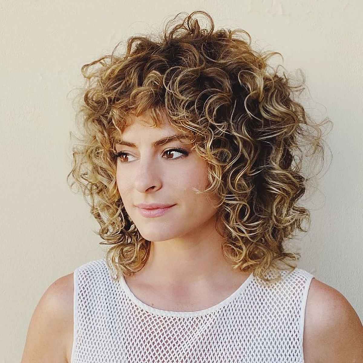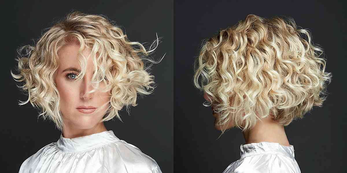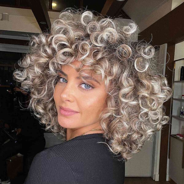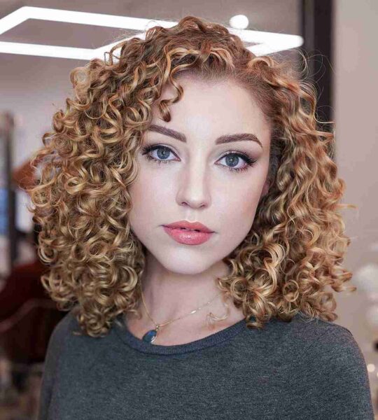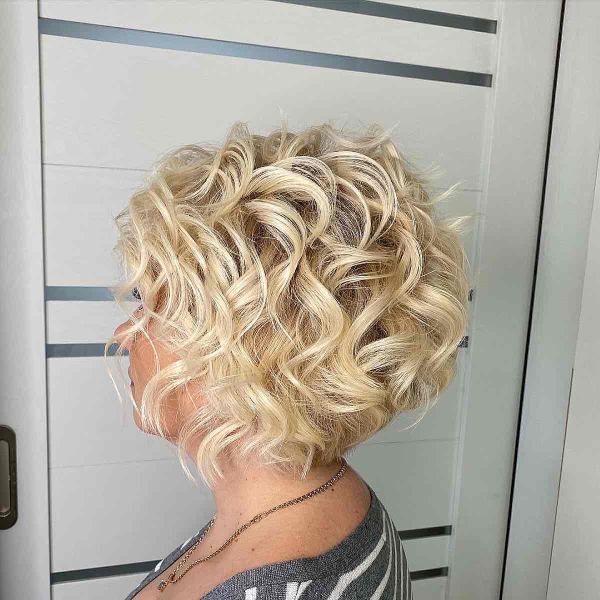 It doesn’t get any better than lustrous bronze curls on a curly bob. Having short blonde curly hair is perfect for softening sharp facial features.