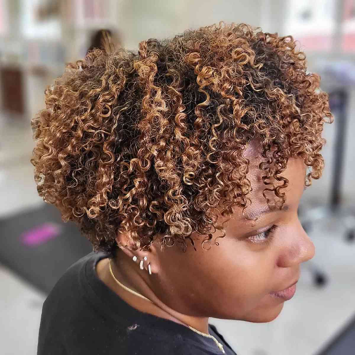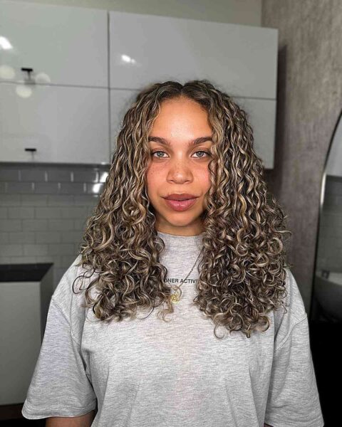 To add some depth and brightness to your hairstyle, think about incorporating blonde highlights. These highlights can beautifully elevate your natural curls and provide them with a sunlit effect. Choose a mix of warm and cool shades that harmonize with your skin tone. When speaking with your hair colorist, go over the intensity and placement of the highlights to create a look that fits you perfectly.